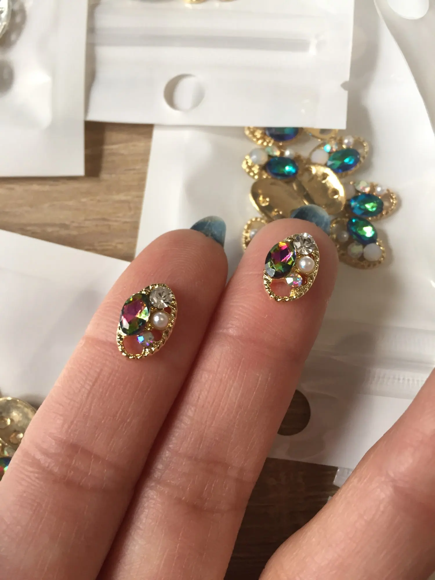 10 шт. полые овальные Жемчужные Подвески Стразы Красивые блестящие подвески для ногтей ювелирные аксессуары металлические для 3D украшения ногтей Лидер продаж