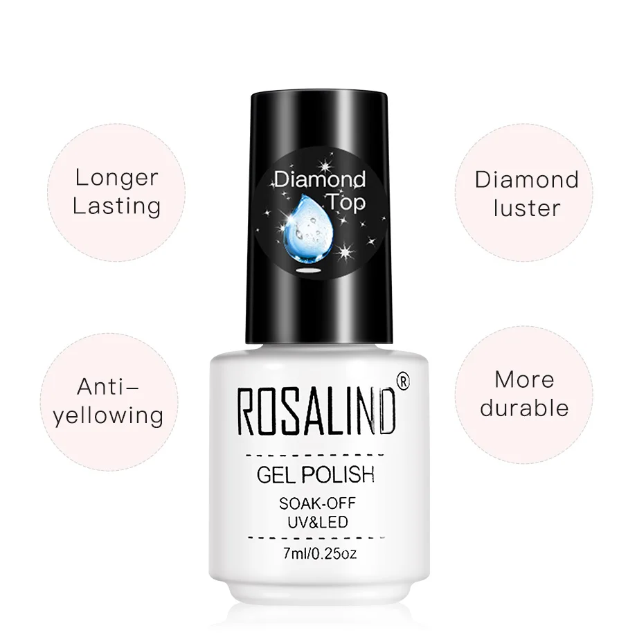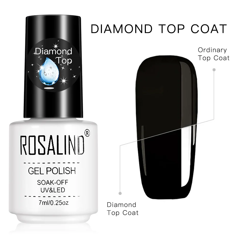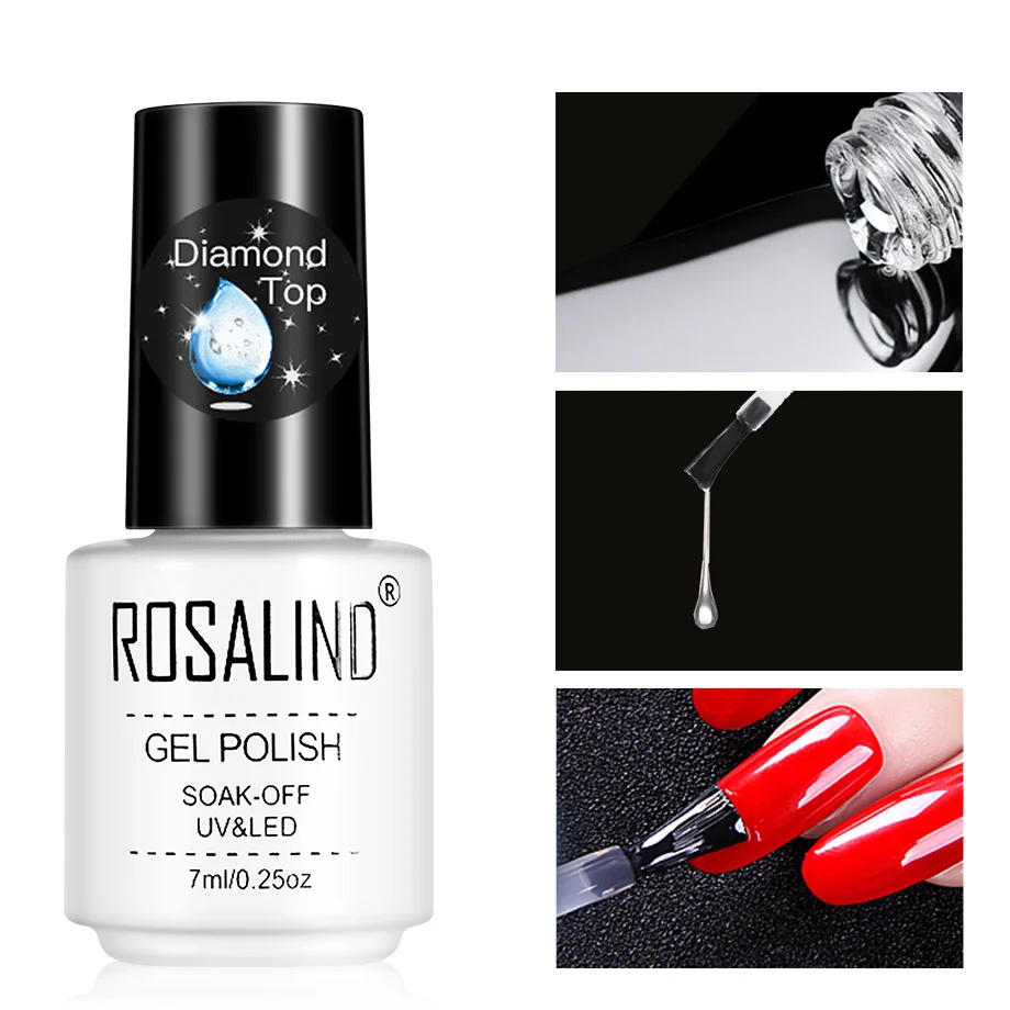 Гель-лак ROSALIND с алмазным покрытием, топовое покрытие для УФ-лампы, отмачиваемый укрепляющий стойкий маникюрный гель для нейл-арта, Праймер, 7 мл