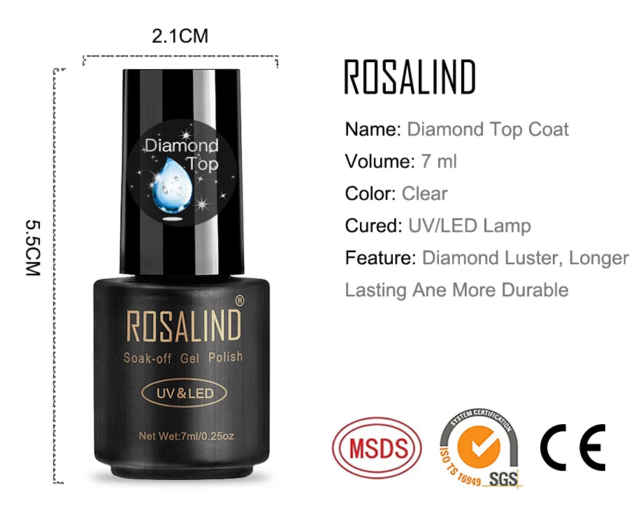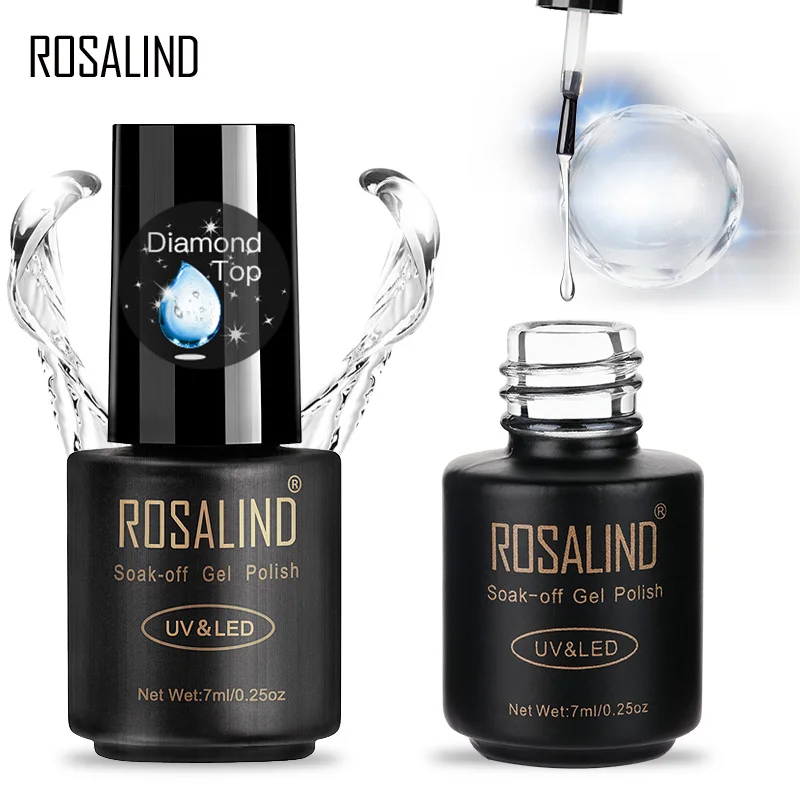 ROSALIND 7 мл Алмазный гель для ногтей верхнее покрытие художественный дизайн замочить сверху светодиодный/УФ-лампа