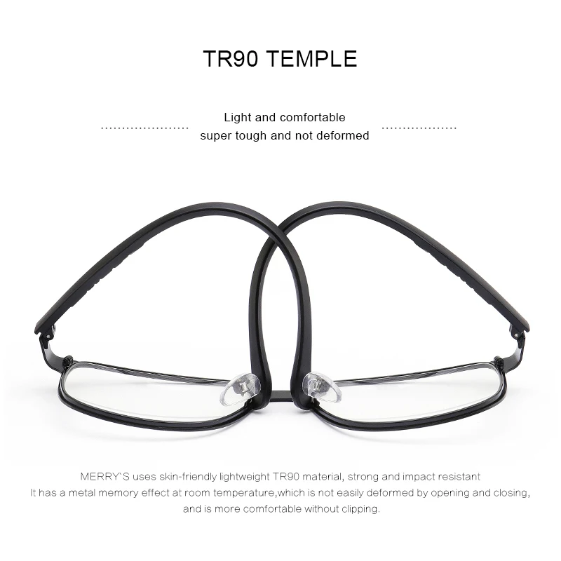 Мужские очки MERRYS, дизайнерские очки из сплава в деловом стиле , Мужские квадратные ультралегкие очки для близорукости по рецепту, TR90 Legs S2104