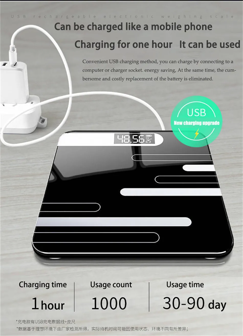 Новинка, напольные весы для ванной, стеклянные Умные Электронные весы с USB-зарядкой и ЖК-дисплеем, домашние цифровые весы для взвешивания
