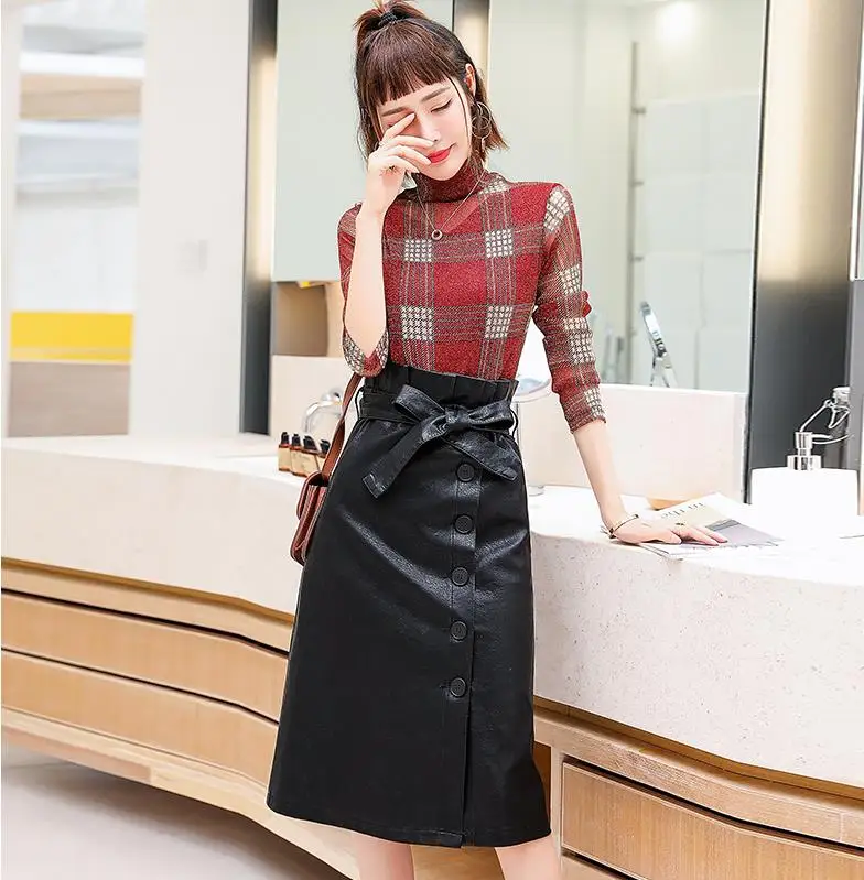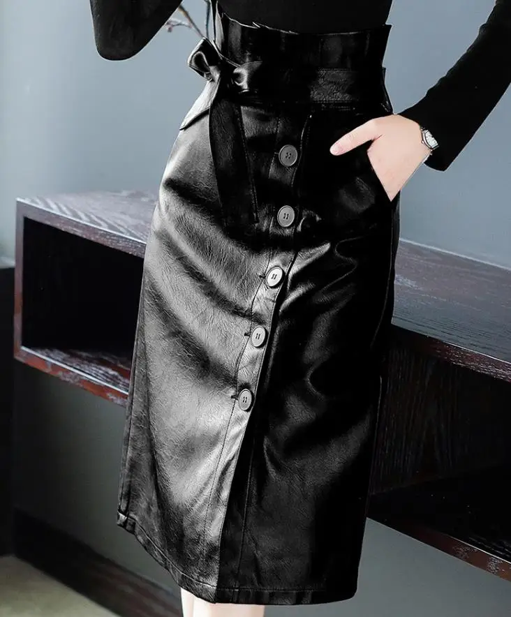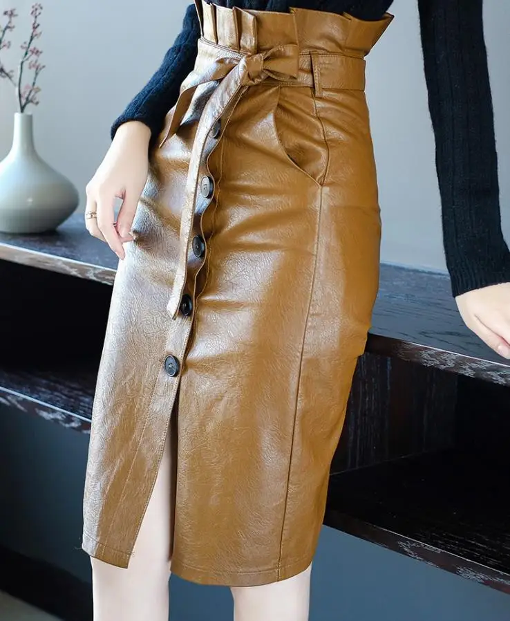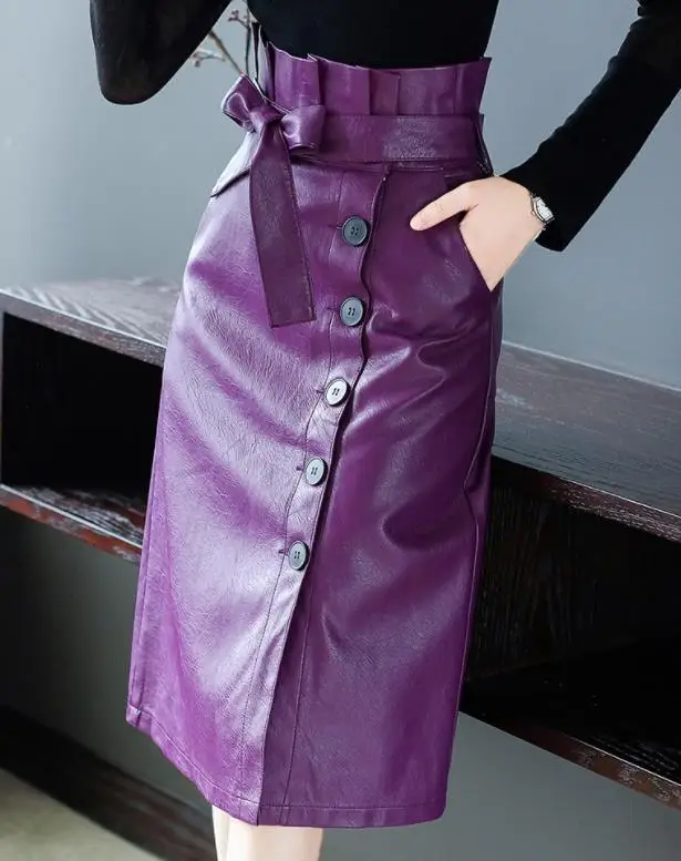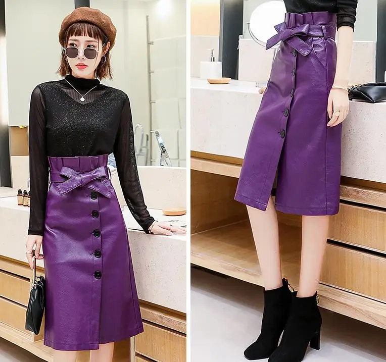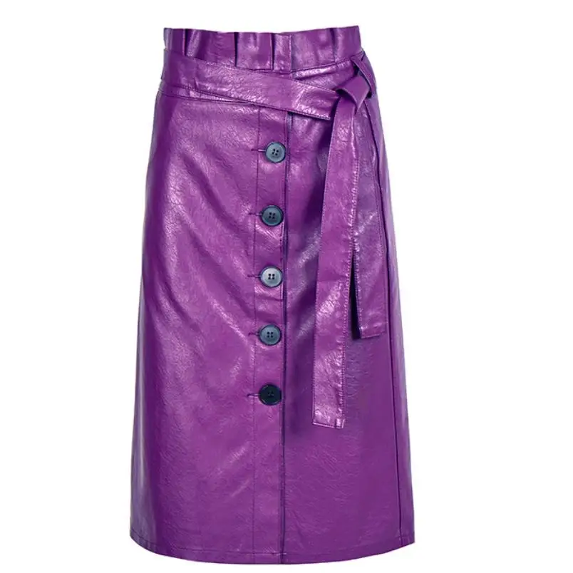 Женская длинная юбка из искусственной кожи с высокой талией, новинка 2021