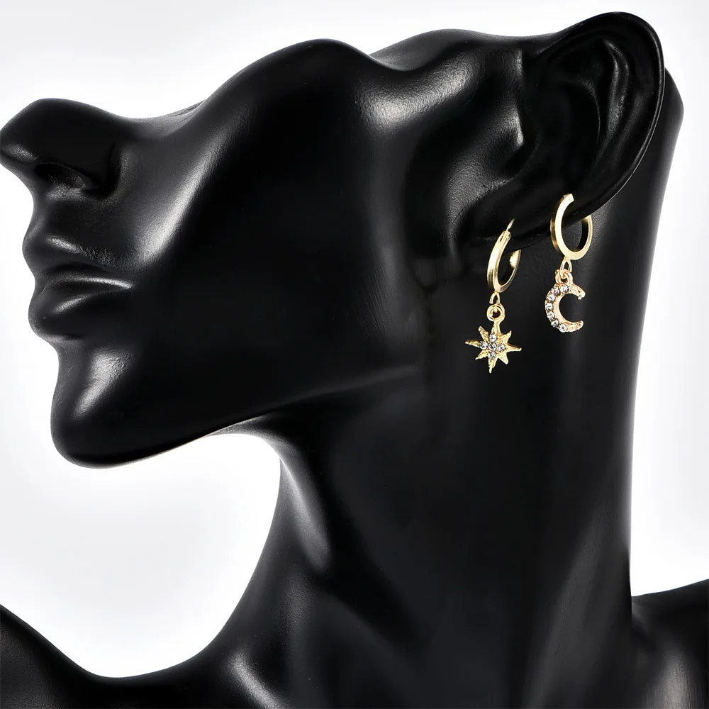 Женские серьги со звездой и луной, Классические асимметричные серьг...