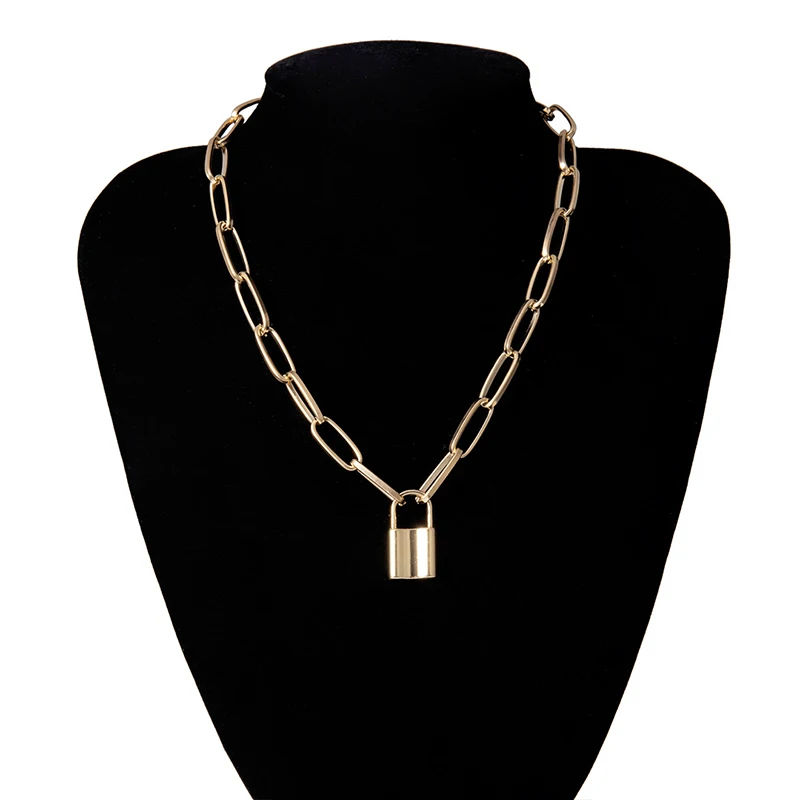 Женское Новое модное ожерелье в стиле панк с подвеской цепочка с замком золотое ожерелье индивидуальность очаровательные ювелирные изделия