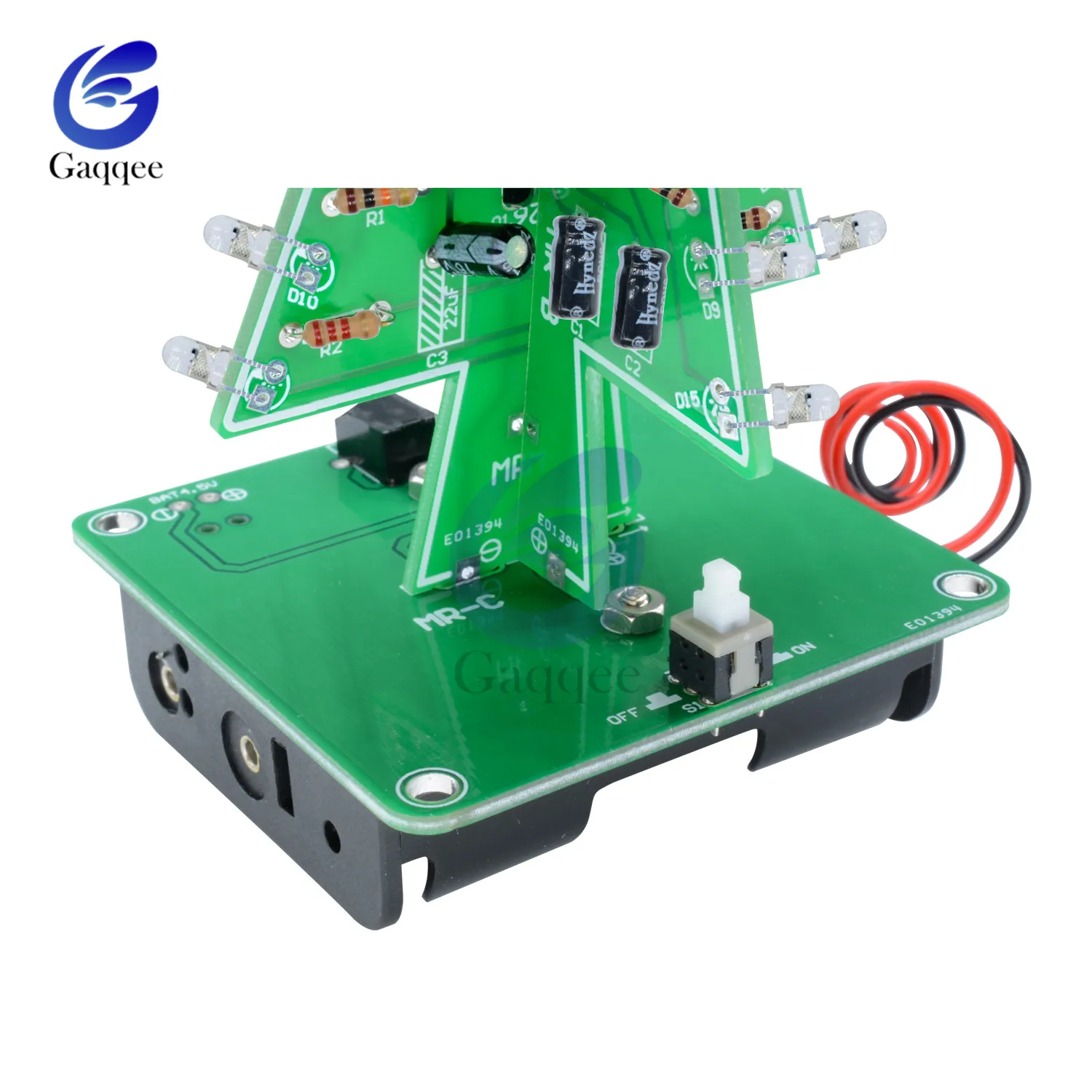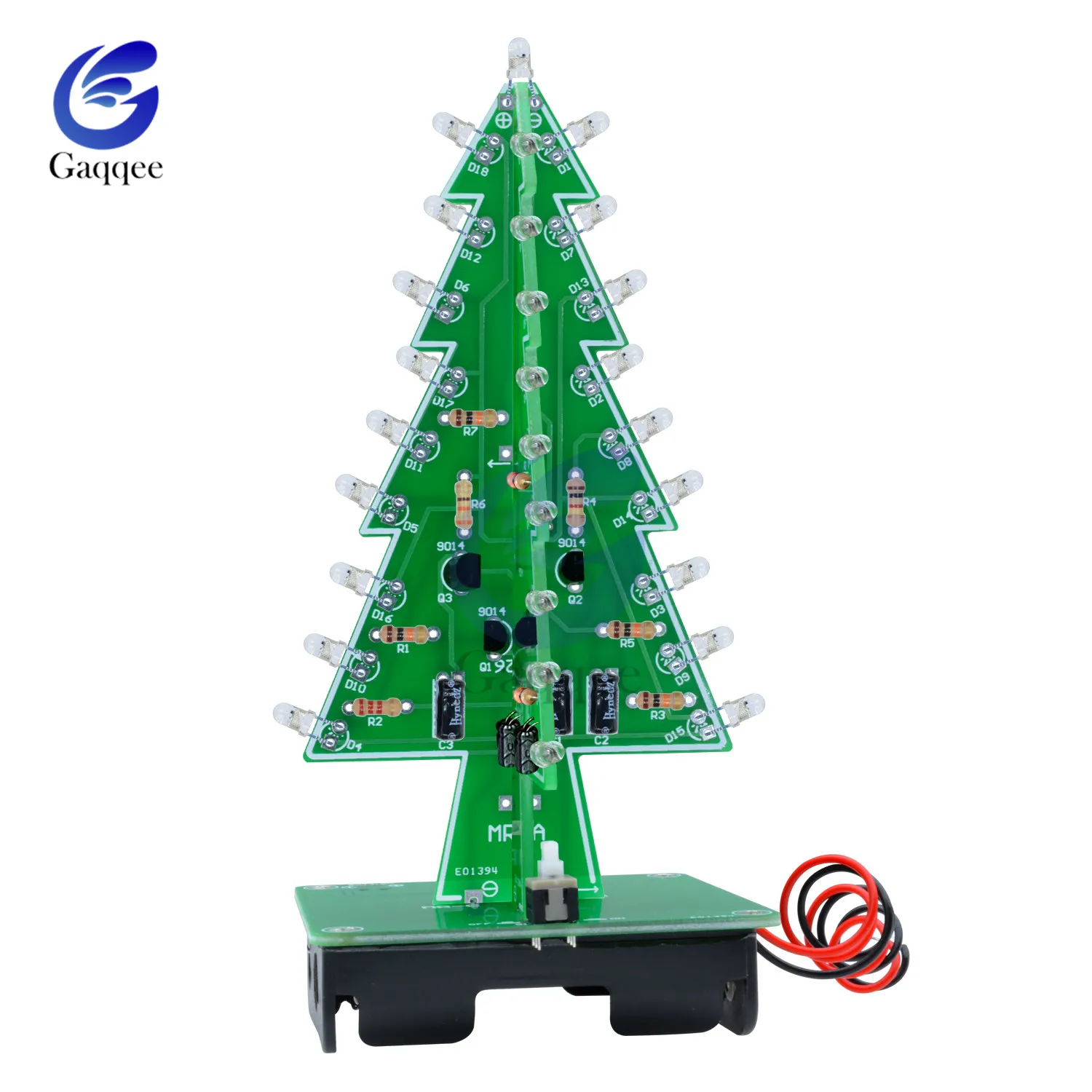 Описание:Эта цепь состоит из 16 светодиодов (светоизлучающих диодов). 16 шт. светодиодов разделены на четыре группы, и каждая группа имеет различные мигающие частоты, когда четыре группы мигают вместе, этот элемент выглядит как Маленькая Рождественская елка. Питание цепи осуществляется от аккумулятора 9 В.Преимущества:Эта схема проста и практична, низкое энергопотребление. Она использует Интегральные схемы для вождения: меньше деталей, и линия проста и легка для понимания.Внешний монтажный комплект:С вставной вилкой для легкой замены деталей в любое время и благоприятной отладки цепи. Также позволяет нам углубить наше понимание принципов схемы в процессе отладки.Эта линия находится в форме осцилляционной цепи циклом, генерируемым следующими правилами:-После первой зарядки Зарядка конденсатора C1 и C4 завершена.-Конденсаторы C2 и C3 будут продолжать заряжаться.-При одновременном включении транзистора Q1 и Q4 он разряжает конденсатор C1 и C4.-Конденсаторы C2 и C3 полностью заряжены, транзистор Q1 и Q4 будет закрыт, а также заряжает конденсатор C1 и C4 снова.-Транзисторы Q2 и Q3 включены, в то время как конденсатор C2 и C3 будут разряжены.-По аналогии, вспышка скорости-это частота колебаний, а частота определяется значениями резистора R и ёмкости C.-Размер платы: 70 мм * 110 мм Посылка включает в себя: 1 х Рождественская елка LED DIY Kit