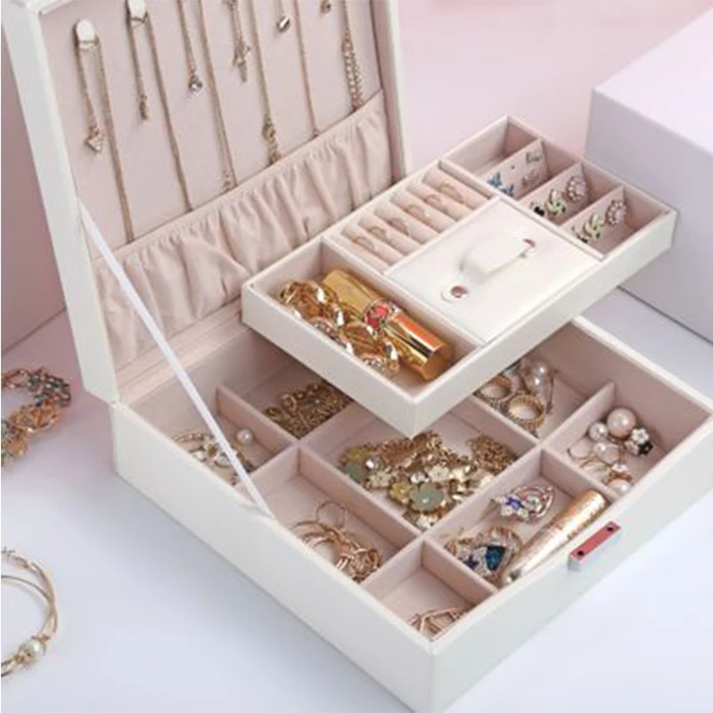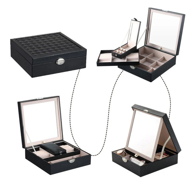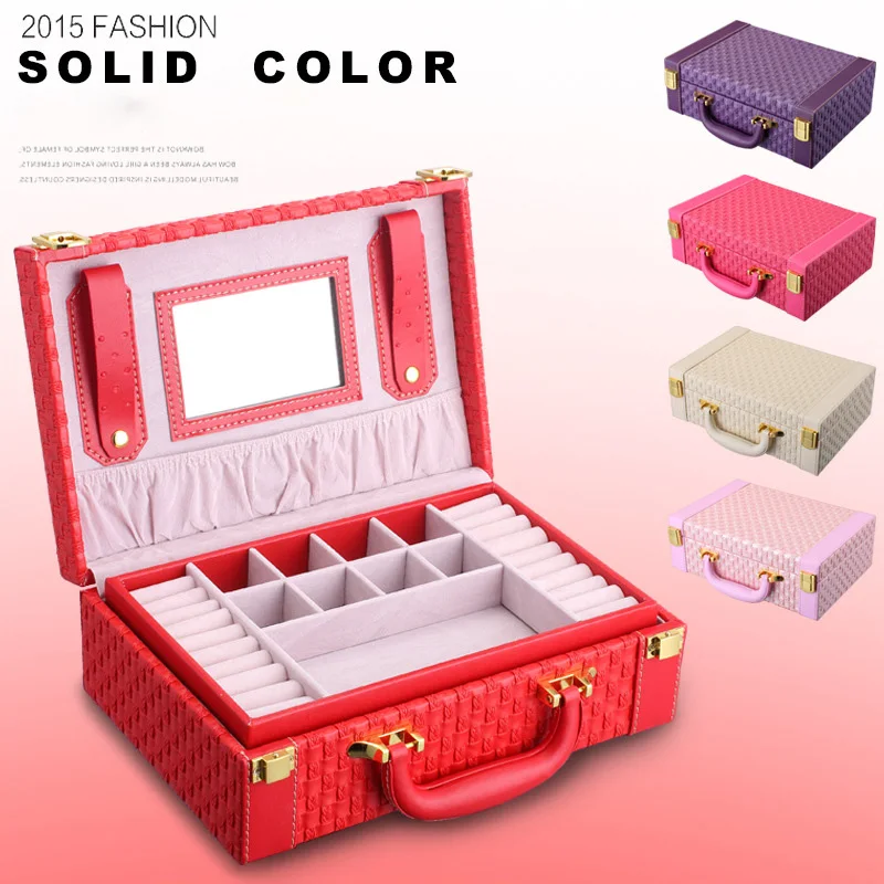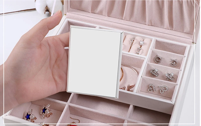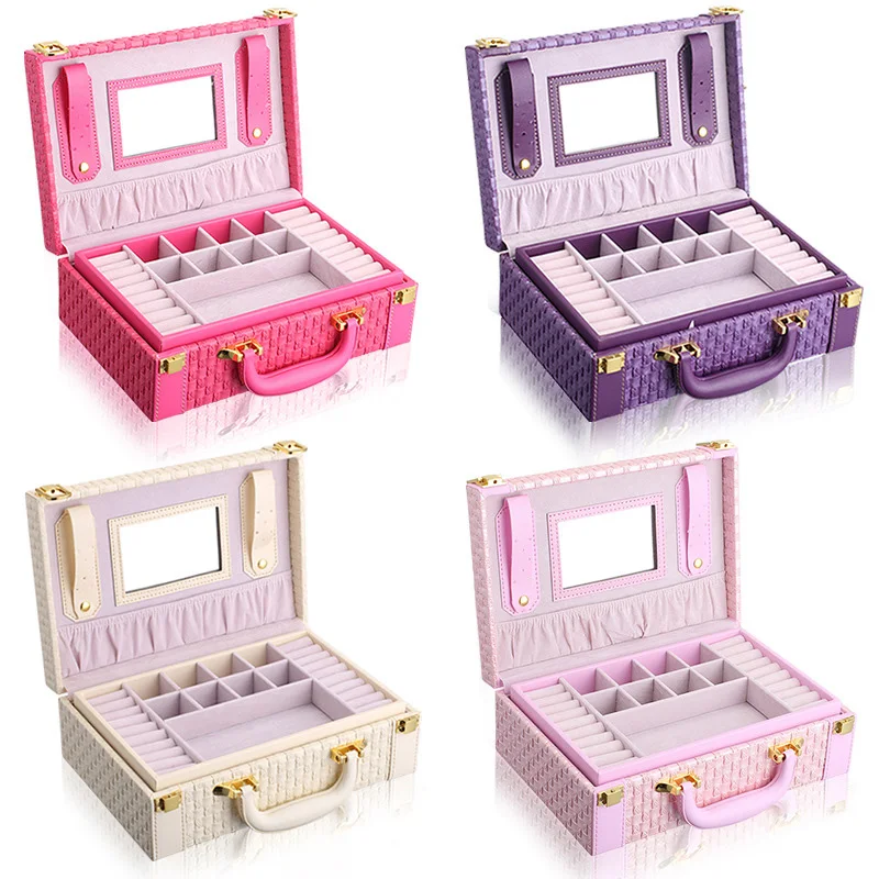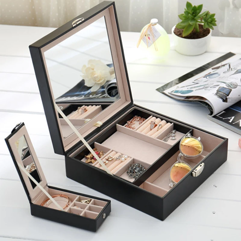 Новая шкатулка для украшений, большая емкость, кожаный ящик для хранения, ювелирная коробка, кольцо для сережек, ожерелье с зеркальными часами, ювелирный Органайзер