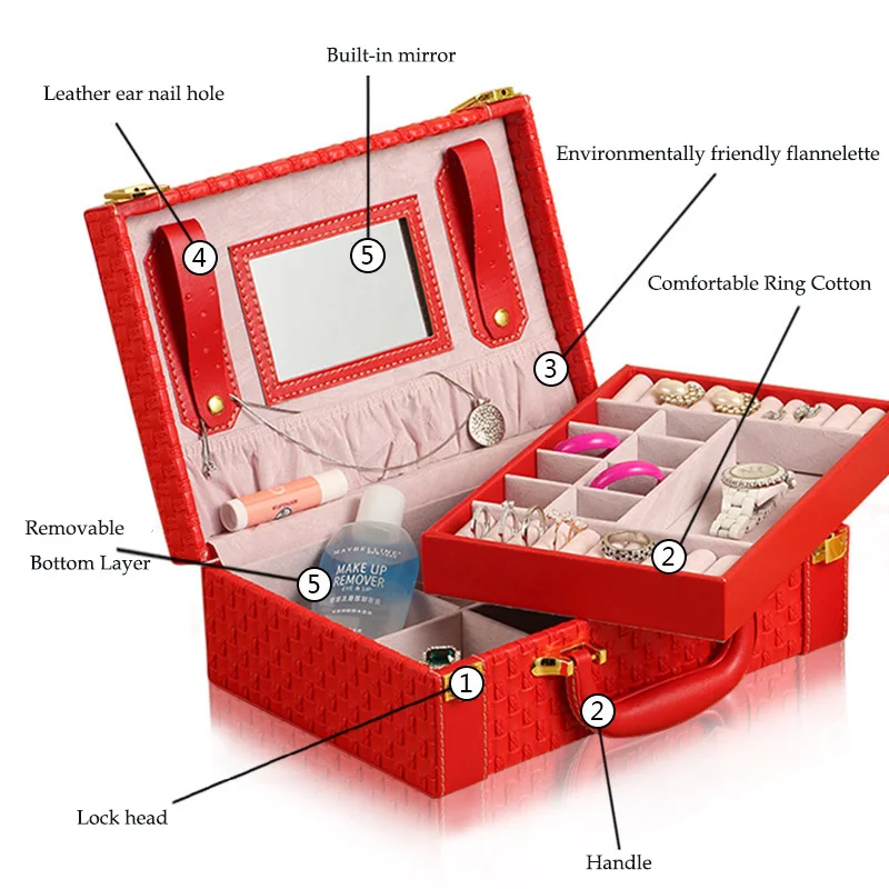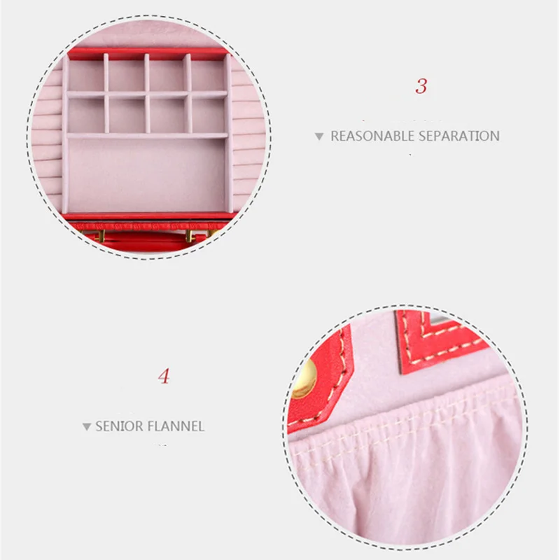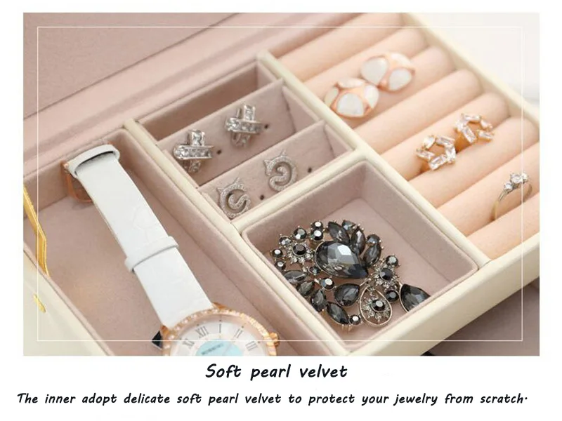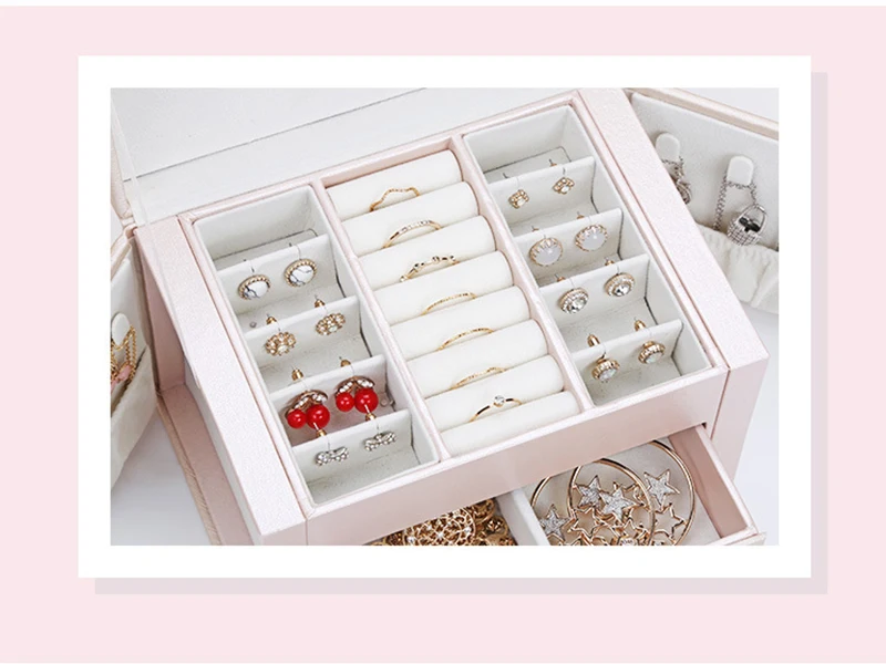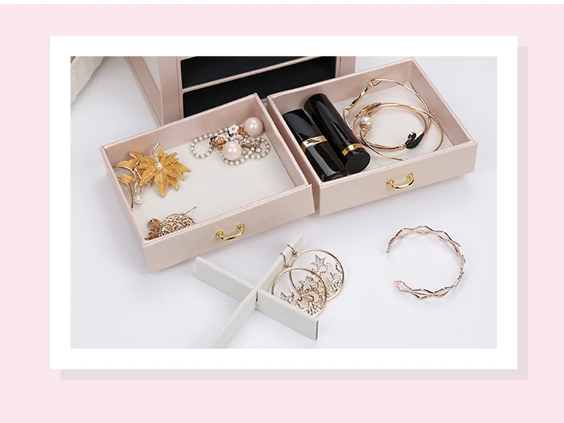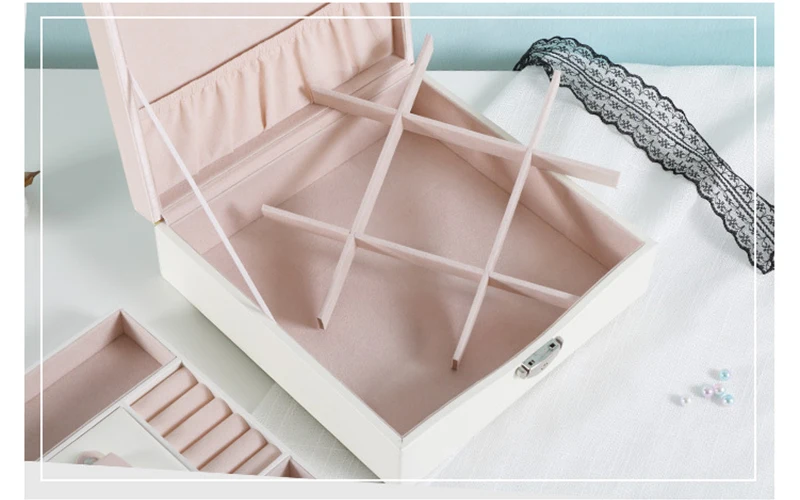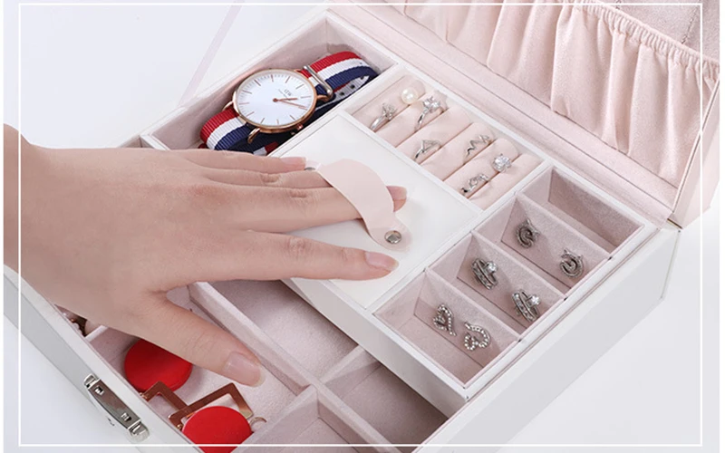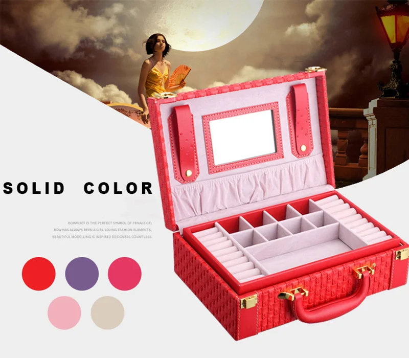 Новая шкатулка для украшений, большая емкость, кожаный ящик для хранения, ювелирная коробка, кольцо для сережек, ожерелье с зеркальными часами, ювелирный Органайзер