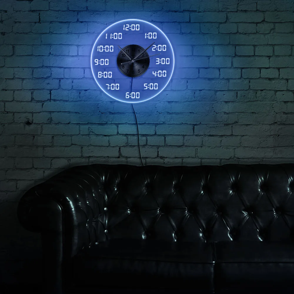 Этот настенные часы с подсветкой изготовлен из прозрачного акрила 3 мм со светодиодным компонентом. Эти 12-дюймовые круглые часы оснащены светодиодами, которые просвечивают по центру часов и освещают цифры и края. Мы также можем сделать для вас любой индивидуальный дизайн, если вам нужен дизайн на заказ или для оптовых заказов, пожалуйста, свяжитесь с нами.
