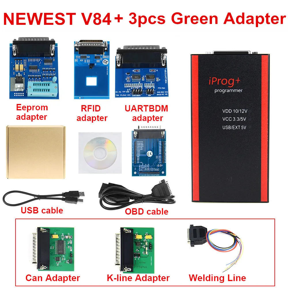 Программатор автомобильных ключей Iprog + Pro V84 с поддержкой подушки безопасности, carradio,dpf off,ECU,IMMO key, PINABS,PINCODE,ODO aкл и т. Д. С полными адаптерами