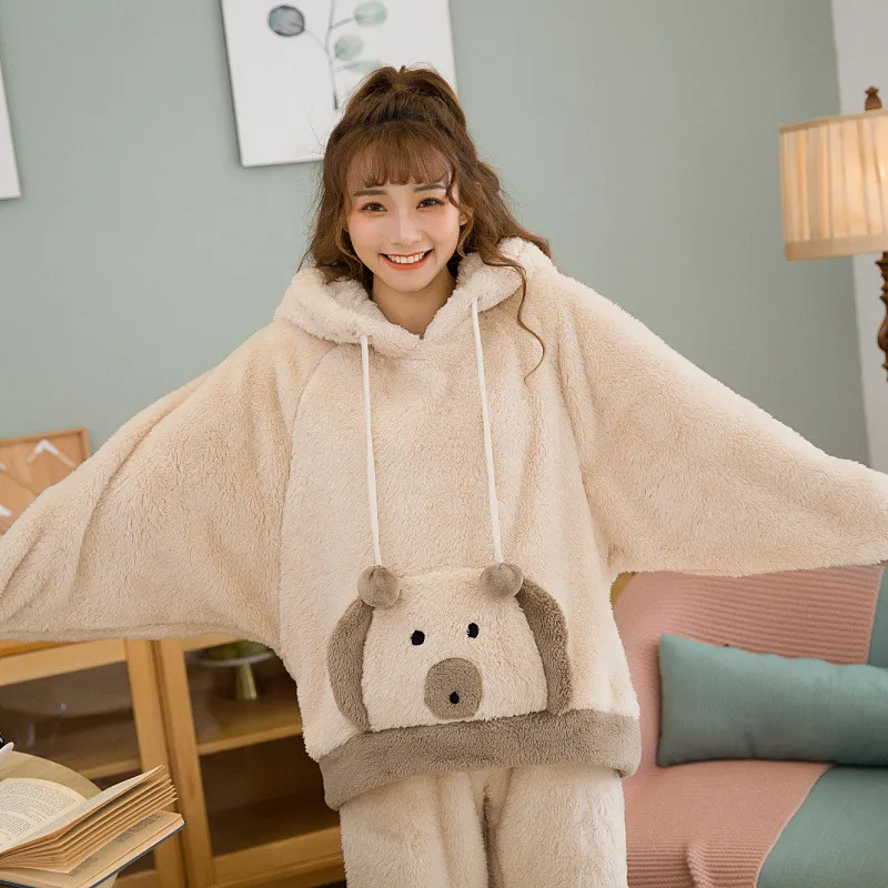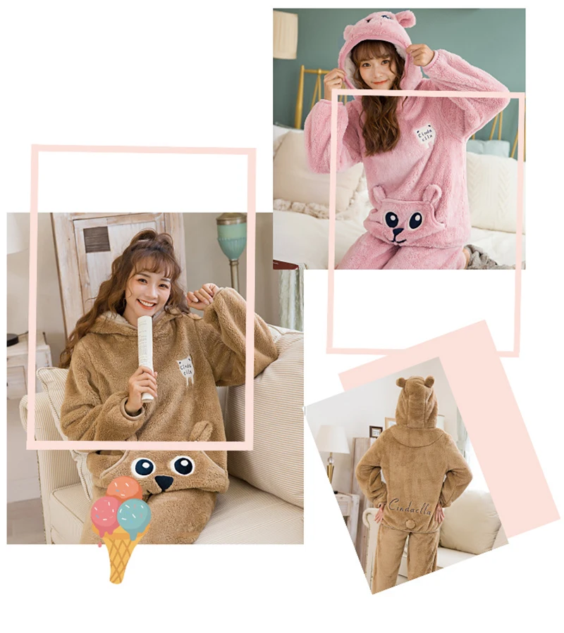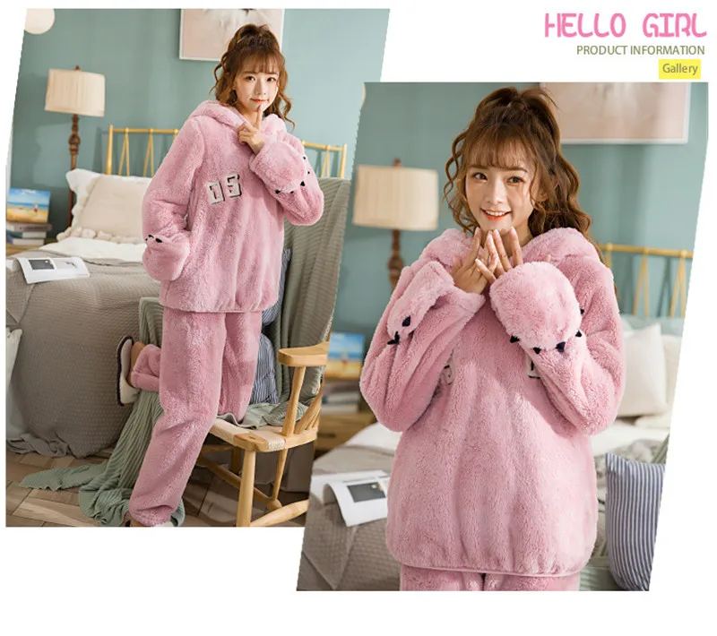 Женская Фланелевая пижама JULY'S SONG, зимняя теплая Пижама с капюшоном, плотная плюшевая Пижама с мультяшными животными