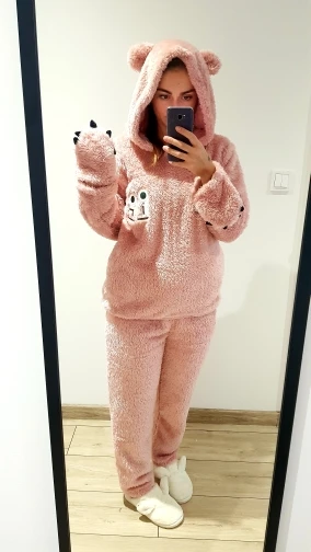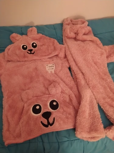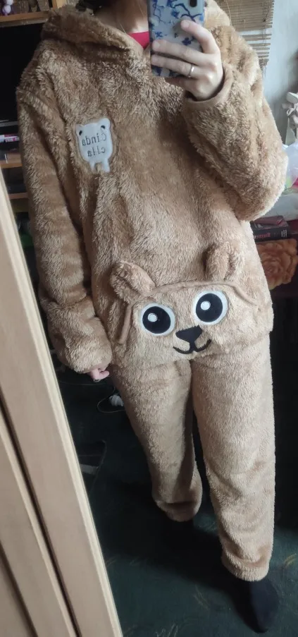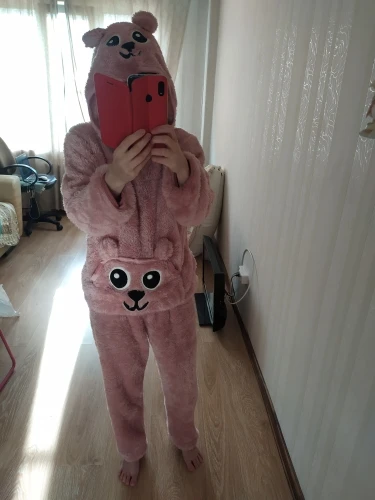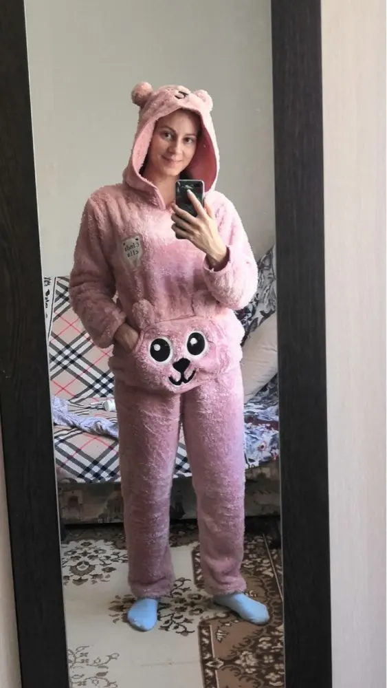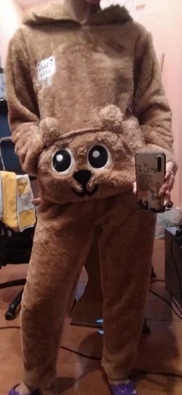 заказывала в качестве подарка для подруги,но померив,решила оставить себе☺прикольная пижамка. Спать в ней ,мне кажется будет не удобно,но вот по дому ходить в холодное время в самый раз. Качество,конечно,оставляет желать лучшего, нитки торчат,одно ухо пришито,другое висит...но это не критично за такую цену. Посмотрим,как будет в носке. Если ничего не отвалится,закажу повторно,но уже подружке.