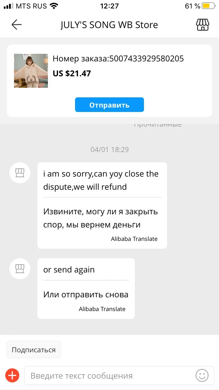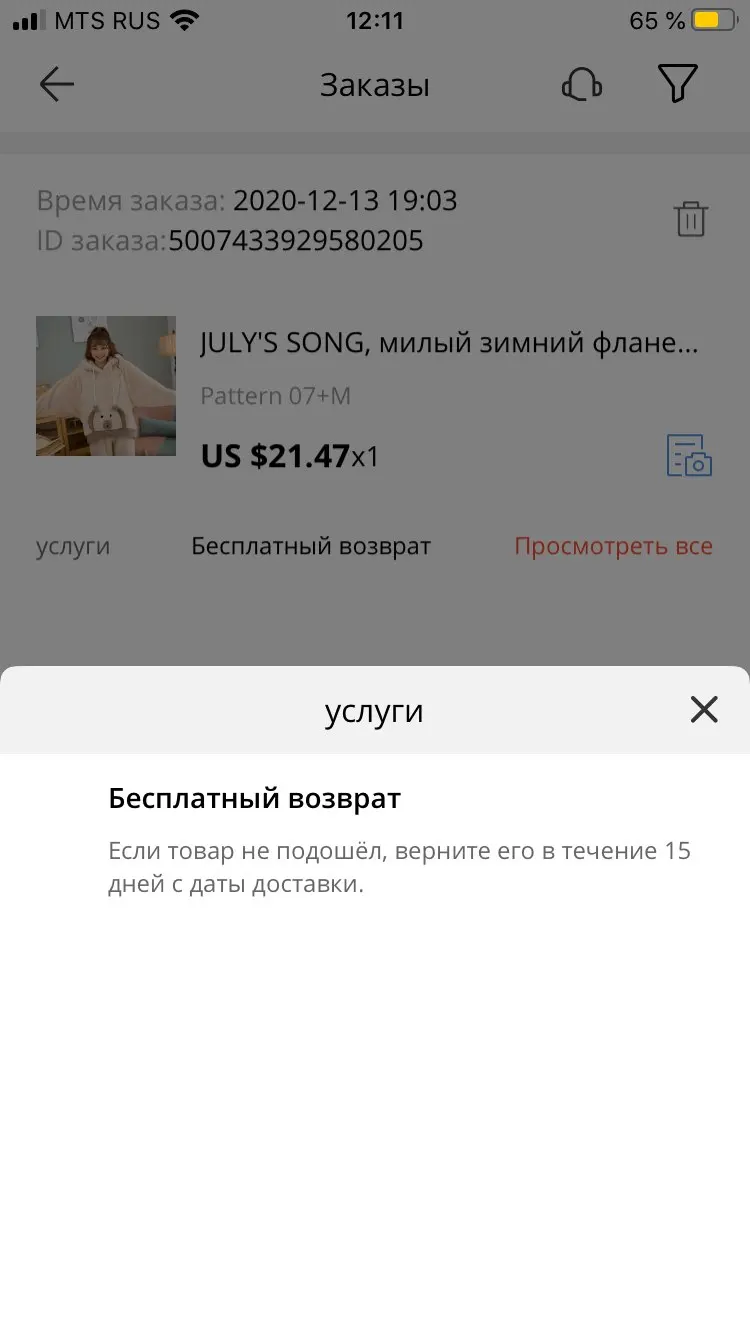 Я заказала костюмчик бежевого цвета с капюшоном. Очень ждала к Новому году. Пришло как раз, 28 декабря. Зря радовалась. Пришло разноцветное нечто с аппликациями на верхней части костюма и липкими цветами на коленках! Такого разочарования никогда не испытывала! Продавец сказал, что виновата Почта - не ту посылку отдали. Увы, что послали, то и отдали. В образе слугах значилась бесплатный возврат. Посмотрим, ибо работники почты сказали, что в этом случае крепится специальный штрих-код, его увы не было. Отправила продавцу фото чека с отслеживанием, надеюсь, что вернётся сумма покупки и возврат будет тоже бесплатным.