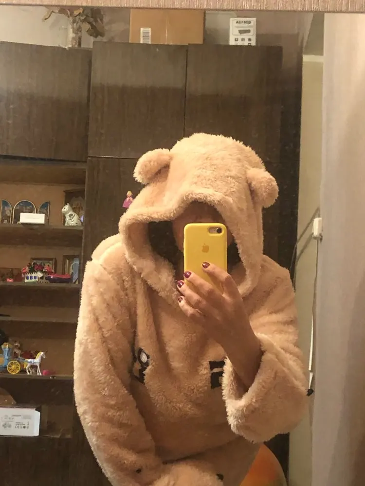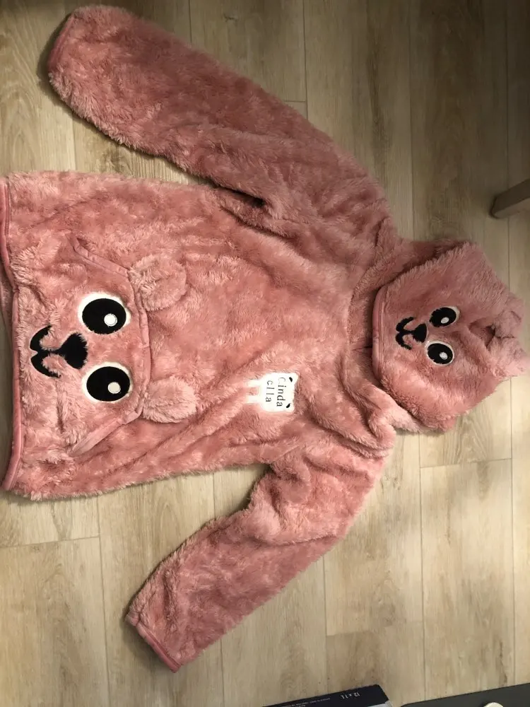 Я очень доволен этой покупкой, действительно очень нужен для холодной зимы. Откройте очень хорошо, и вы быстро прибыли. Плохая вещь, Рукава немного короткие, и некоторые детали имеют небольшие дефекты, такие как глаза или принт. Однако все остальное соответствует описанию и даже имеет заднюю часть, как настоящий розовый медведь, это супер кавайный❤Я бы сказал вам, что рукава немного длиннее, но в целом они довольно хорошие. Я рекомендую его, и я очень доволен❤②