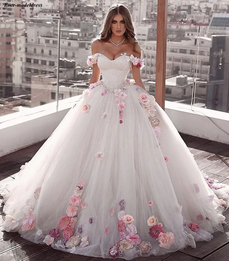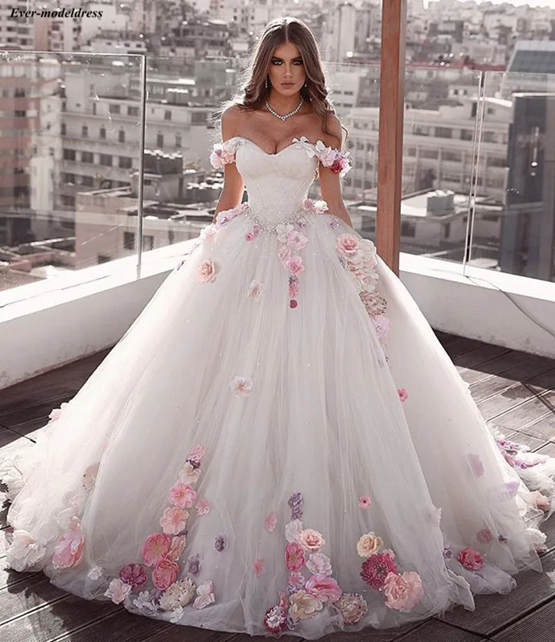 Свадебные платья принцессы, новинка 2022, бальное платье с открытыми плечами и 3D цветочным оформлением, свадебное платье невесты, свадебные платья, платье