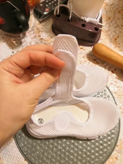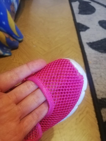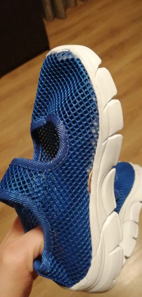 Хорошие тапочки, невесомые. Летом ребенку будет удобно бегать. на ногу 15 см. заказала 29 размер, начитавшись отзывов. запас 2 см. Придется заказать еще одни на 2 размера меньше. такое ощущение, что люди не знают размера своего ребенка, заказывают на авось и пишут потом, что маломерки и тд. Сантиметр вам в помощь! Подкачали только пятки, сшиты коряво. На фото видно.