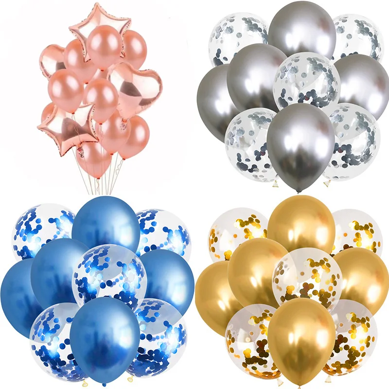 1 Набор 12-дюймовых латексных гелиевых шаров с металлическим блеском и конфетти