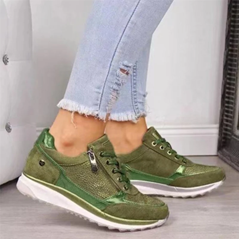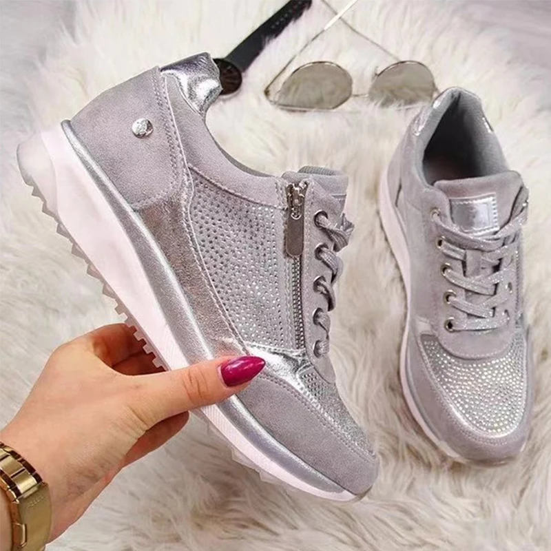 Женские кроссовки на танкетке, с вулканизированной подошвой и блестками, спортивная обувь для девочек