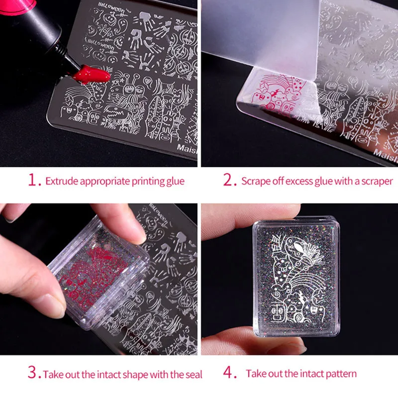 Голографический прозрачный штамп для стемпинга, набор пластин со скребком, желе, силиконовый штамп, головка, дизайн ногтей, шаблоны, инструменты