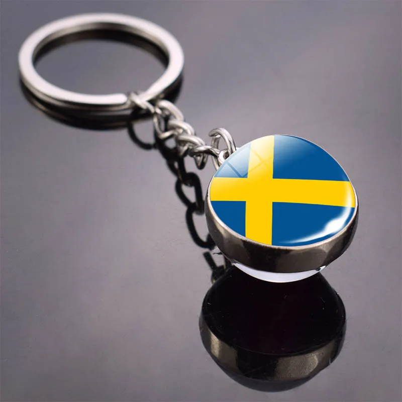 Двухсторонний подвесной брелок в виде стеклянного шара с национальным флагом стран Европы, Австрия, Италия, Португалия, Норвегия, Дания, Испания