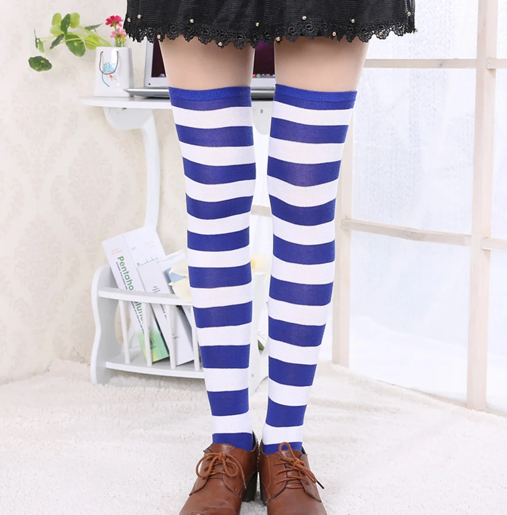 Японские сине-белые полосатые кавайные аниме Лолиты колготки в стил...