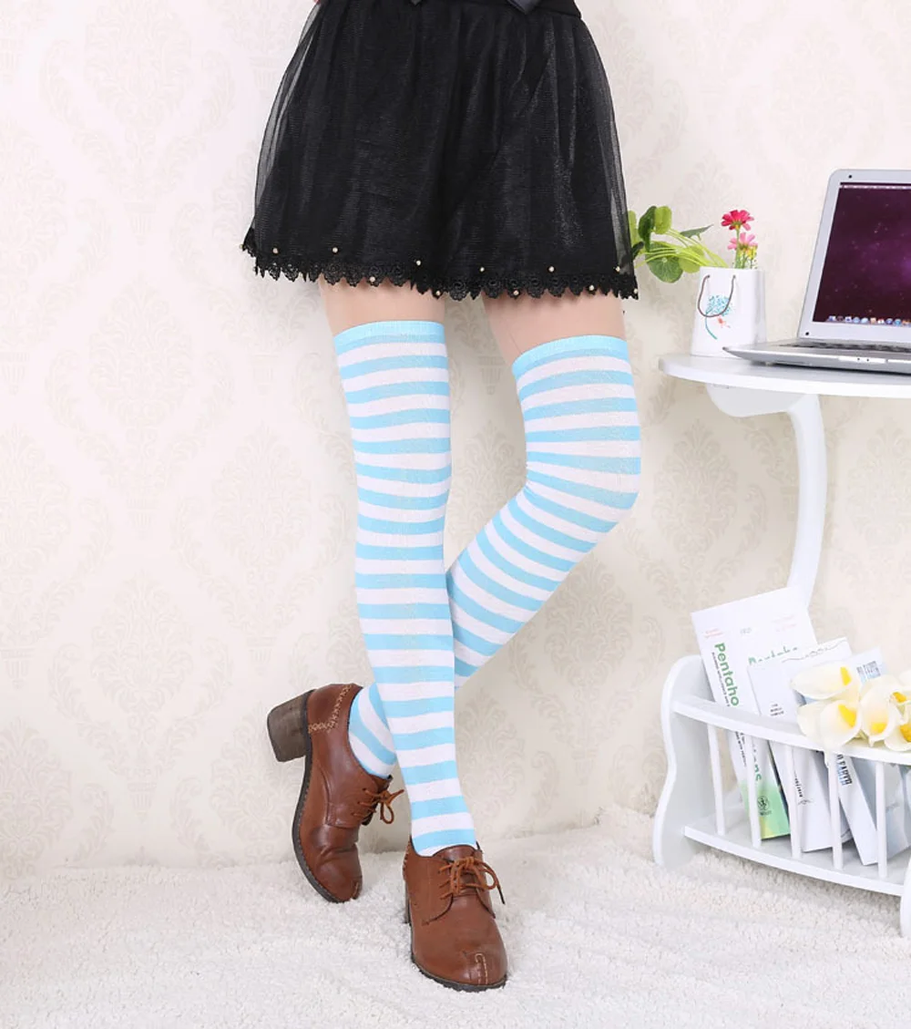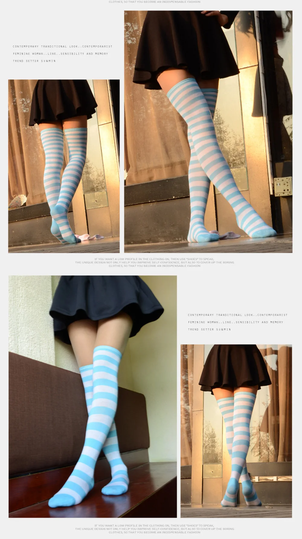 Чулки женские длинные эластичные в полоску, модные милые пикантные ...