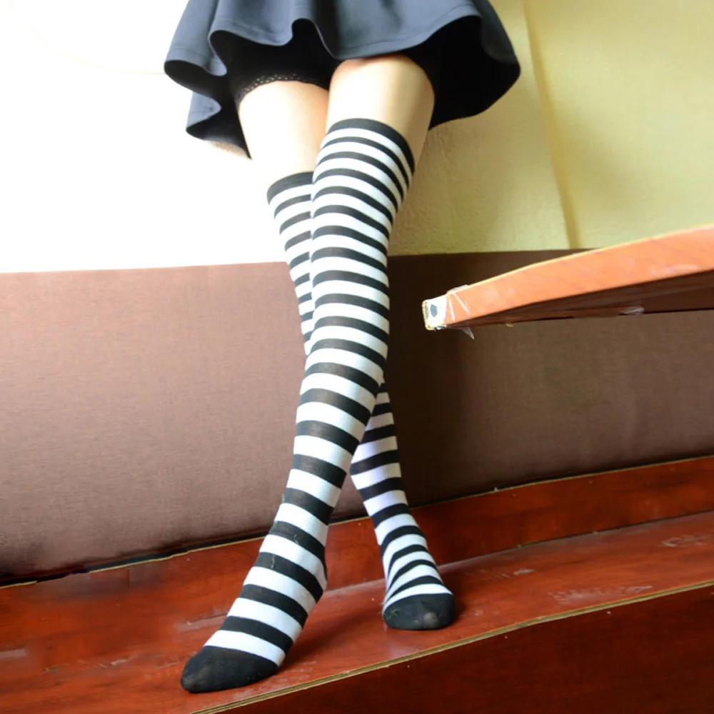 Женские длинные полосатые носки выше колена, высокие чулки, платье ...