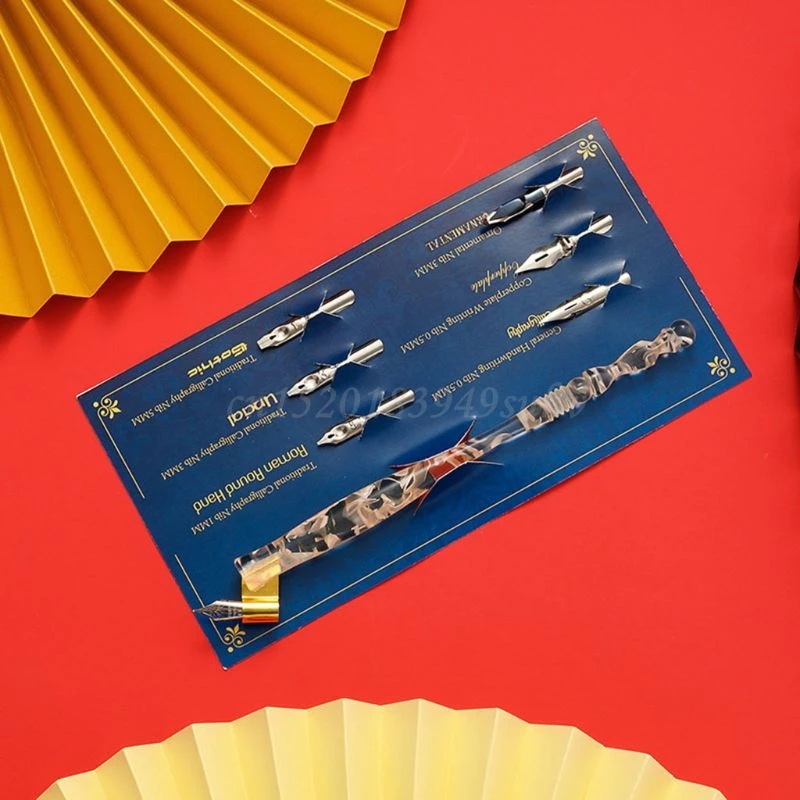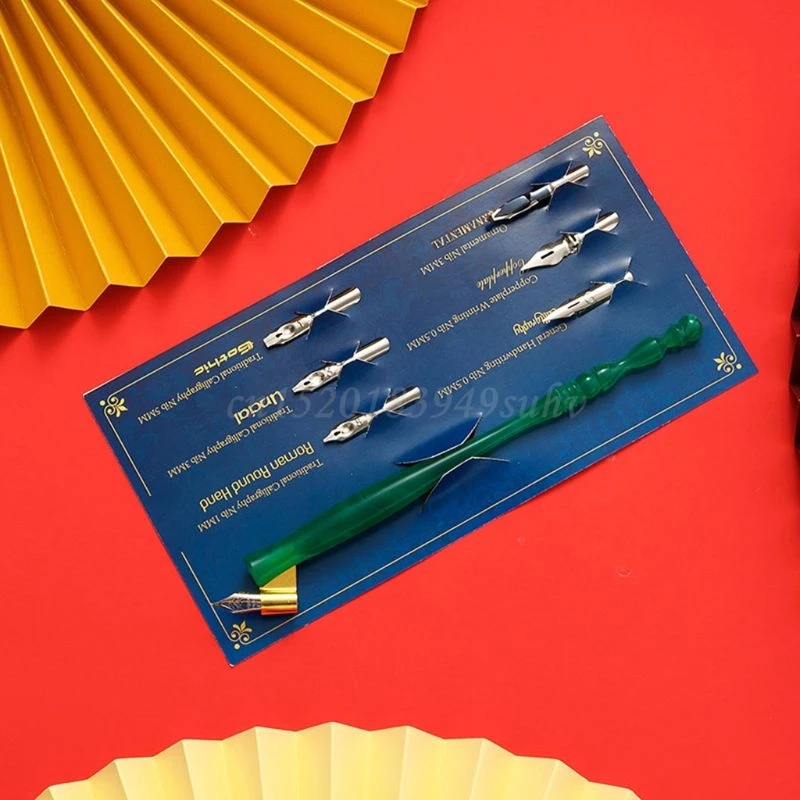 Держатель для каллиграфии OOTDTY, в стиле ретро, манга + 6 наконечников