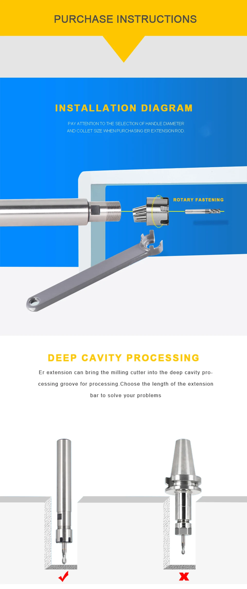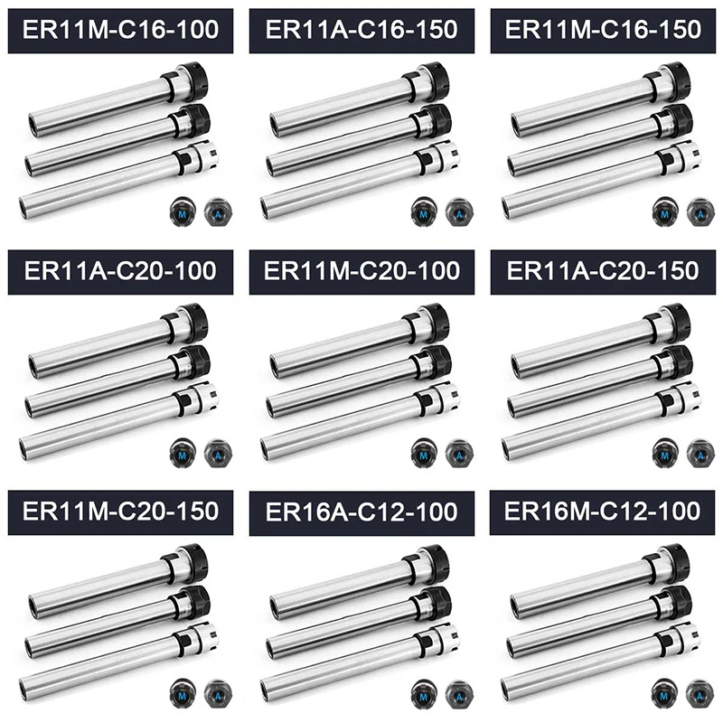 UCHEER 1 шт. удлинитель токарный стержень цанговый патрон Держатель прямой хвостовик металлический CNC фрезерный резец держатель инструментов ER111620AM OVL100150