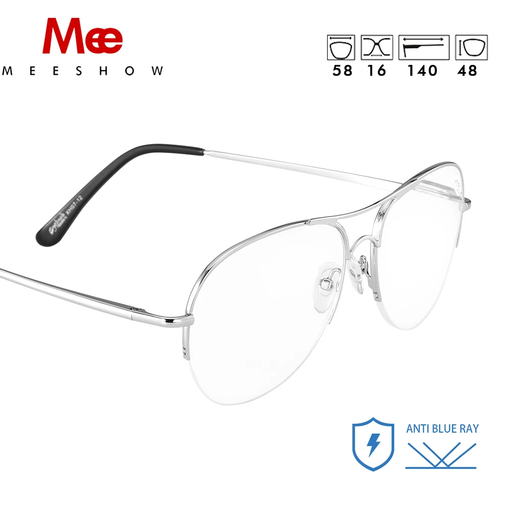 Мужские и женские очки для чтения MEESHOW, металлические очки большого размера с блокировкой сисветильник и защитой от синего света, очки для чтения при близорукости