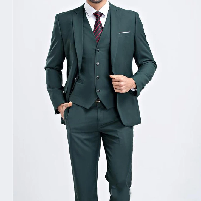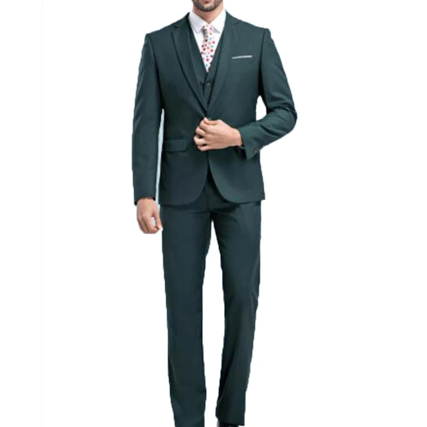 2020 Горячая рекомендация темно-Изумрудный Охотник зеленый смокинг жениха Нотч лацкане мужчины Блейзер Выпускные платья деловой костюм (пиджак + брюки + жилет)