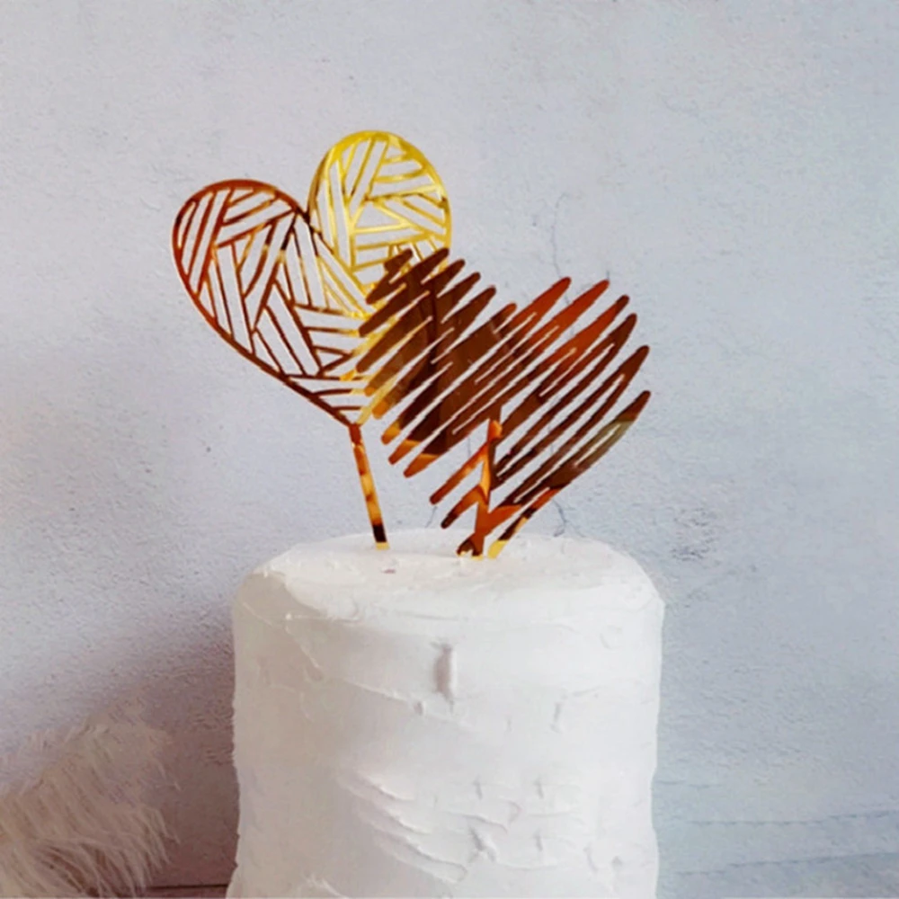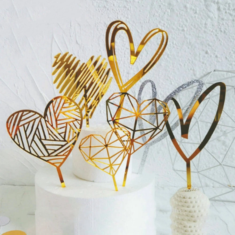 Новый золотой акриловый Топпер для торта, коллекция сердец, любовь, свадьба, капкейк, топпер для юбилея, инструменты для украшения торта