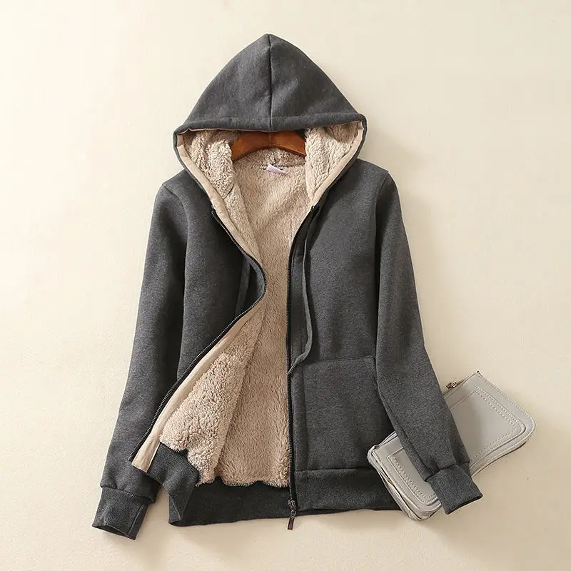 Женская Повседневная зимняя теплая толстовка с капюшоном на молнии ...