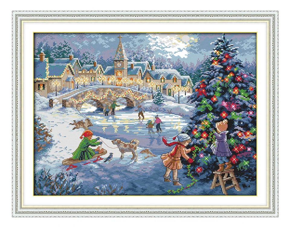 Набор для вышивки крестиком с изображением зимней снежной сцены, Ро...