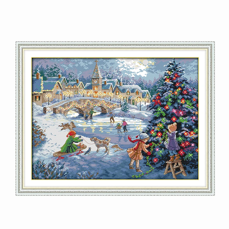Рождественский подарок, зимний пейзаж, 11CT 14CT, наборы для вышивки крестиком, набор для рукоделия, оптовая продажа, Набор для вышивки крестиком