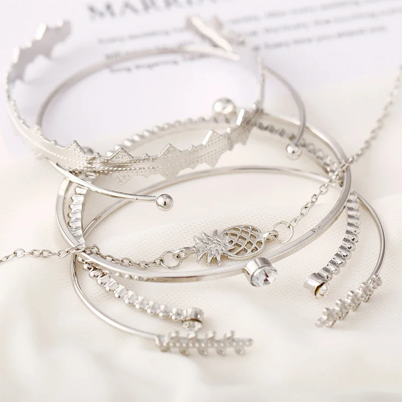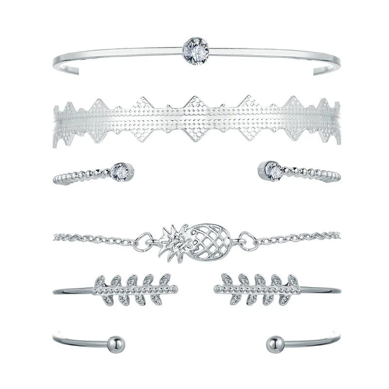 Комплект из 6 открытых браслетов для женщин, в западном стиле, с рисунком ананаса и листьев