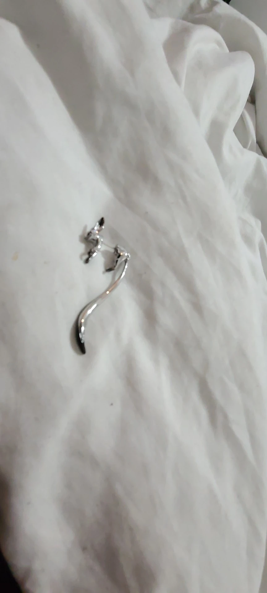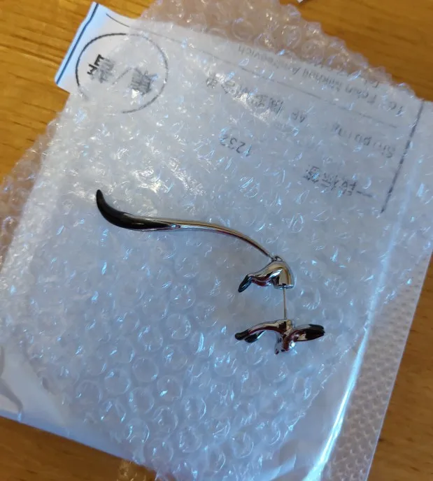 Супер быстрая доставка! Серёжка симпатичная, только очень длинная застежка, придётся укорачивать, и очень мягкая, легко гнётся.