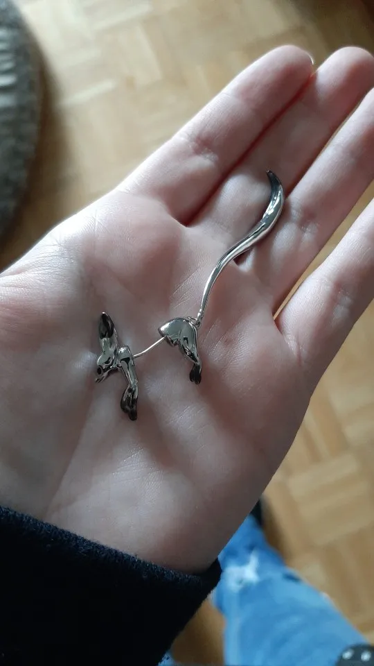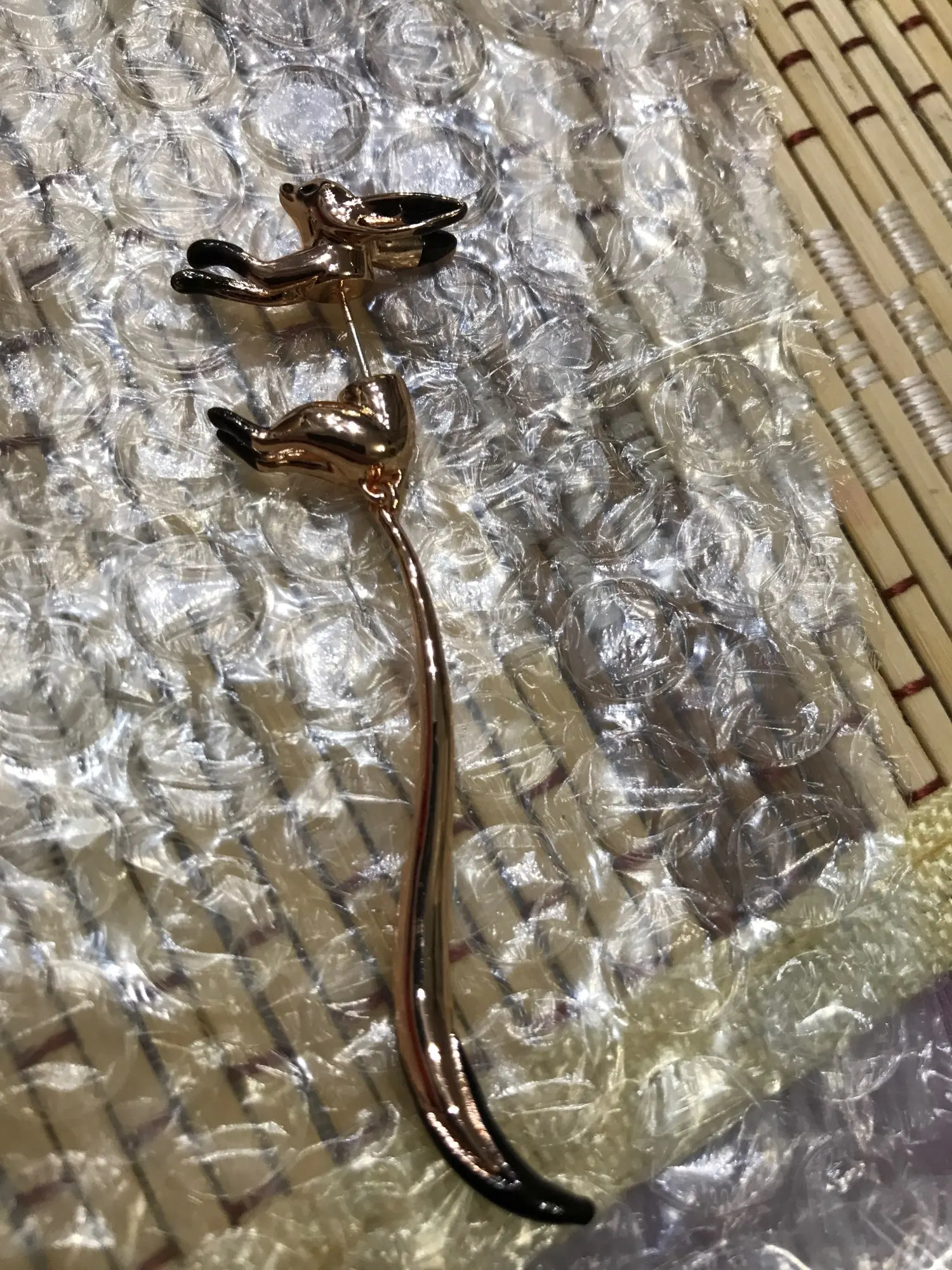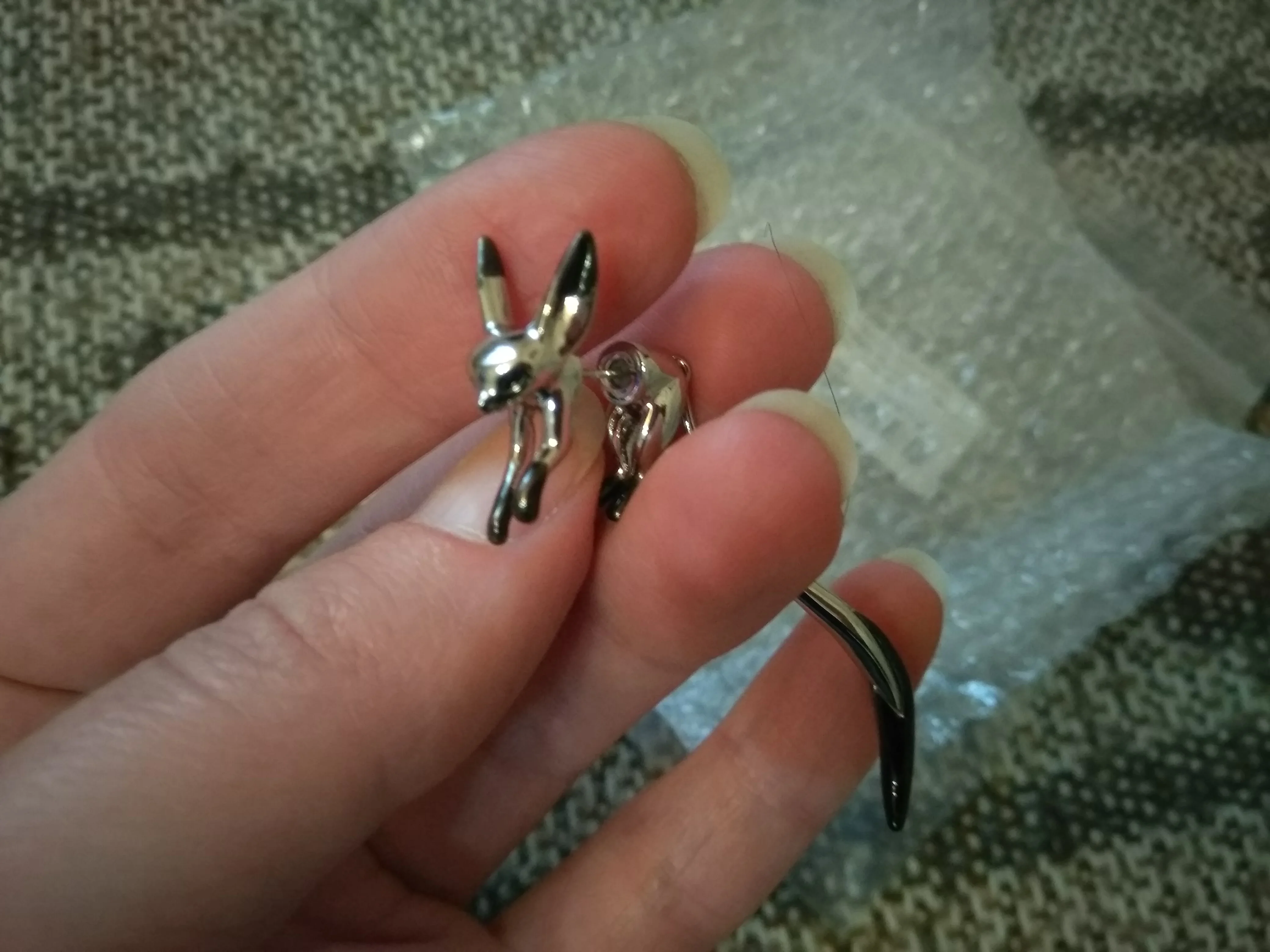 Очень длинная палочка в ухо, на толстенную мочку или будет сзади свисать, может так и задумано, чтобы видно было попу лисы. Приходит по одной как и заявлено в описании!!!