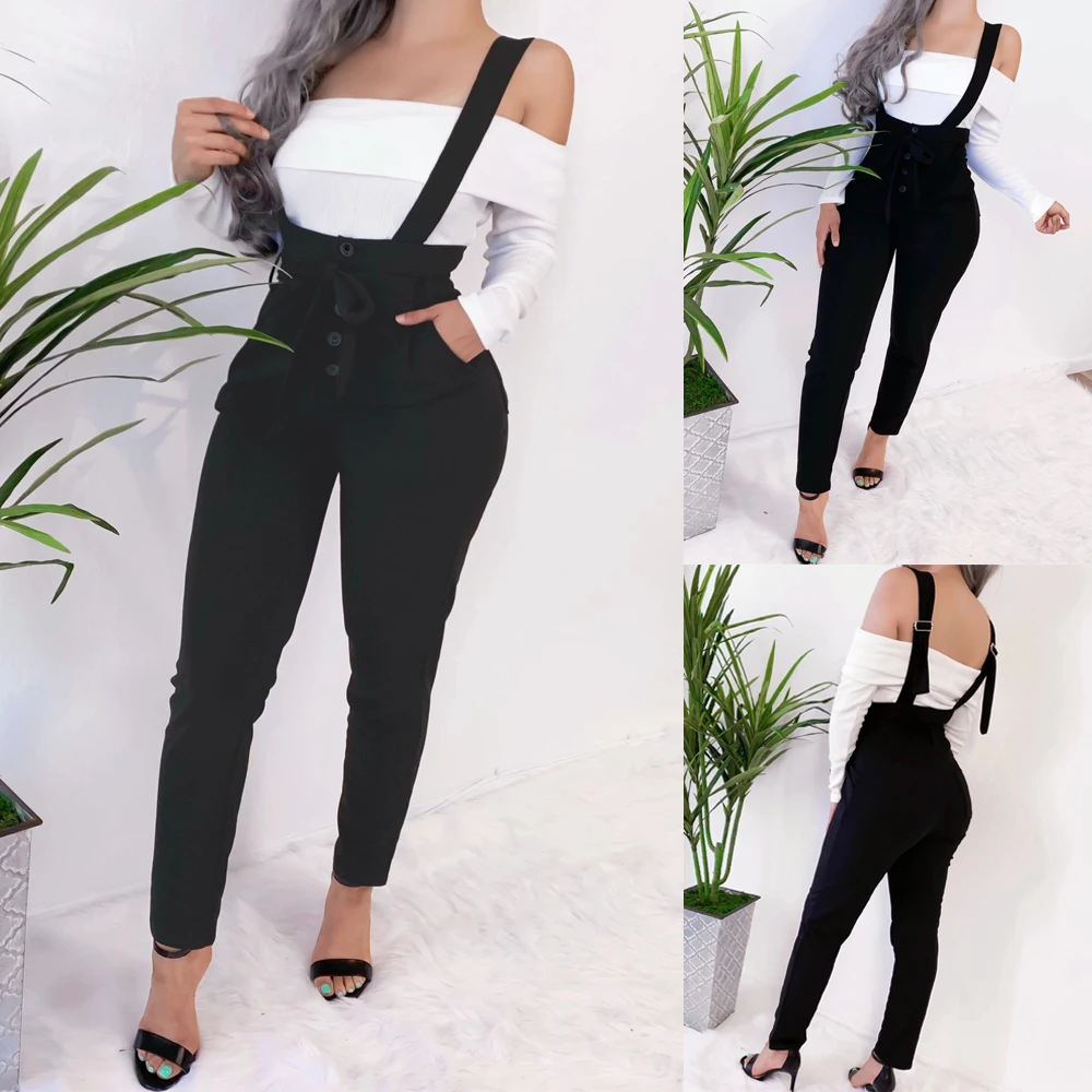 Женские модные черные осенние тонкие брюки, женский комбинезон на б...