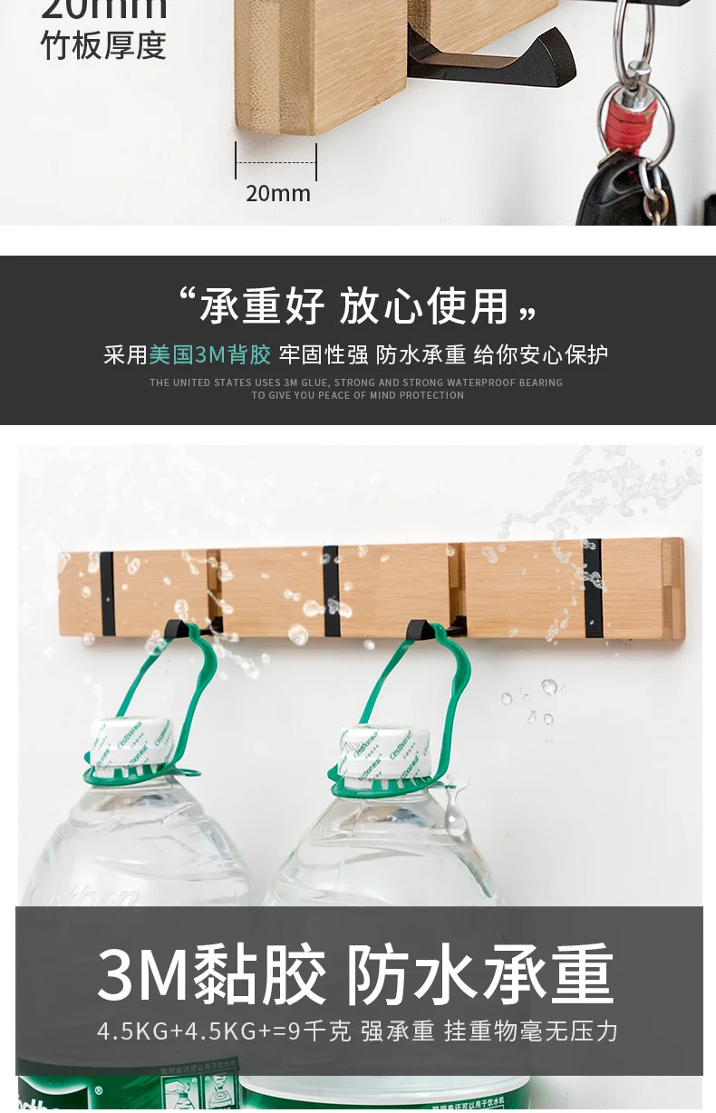 Настенный крючок для одежды, вешалка для одежды из натурального бам...