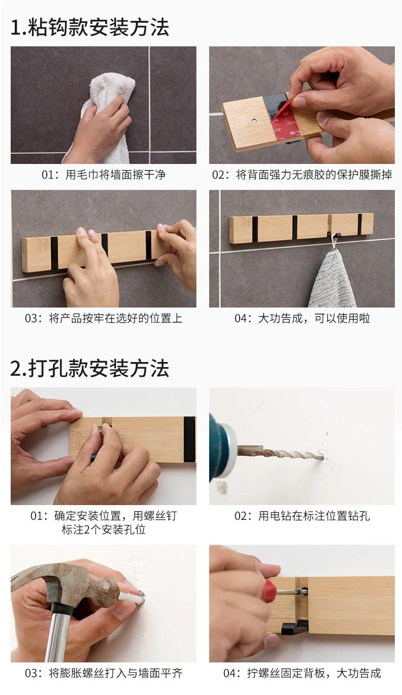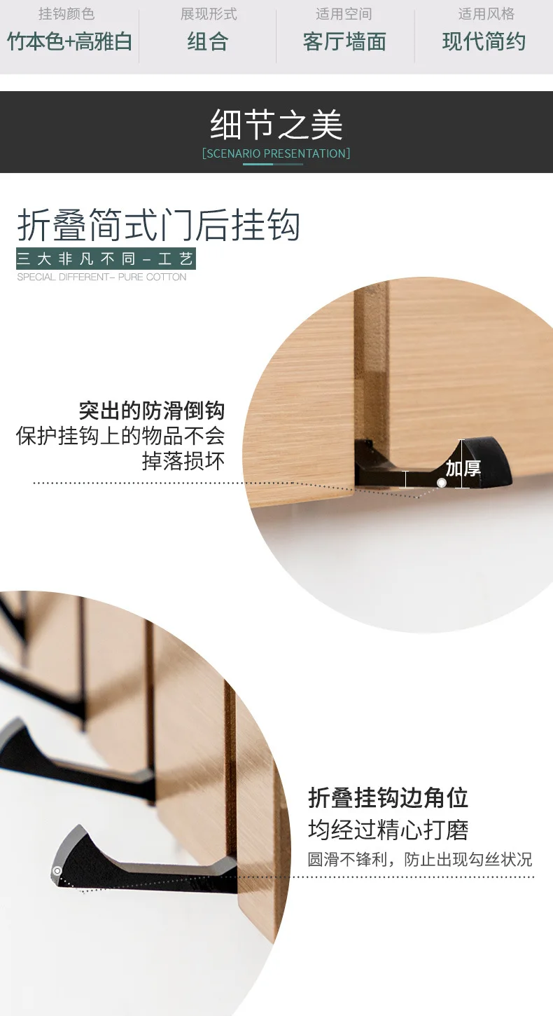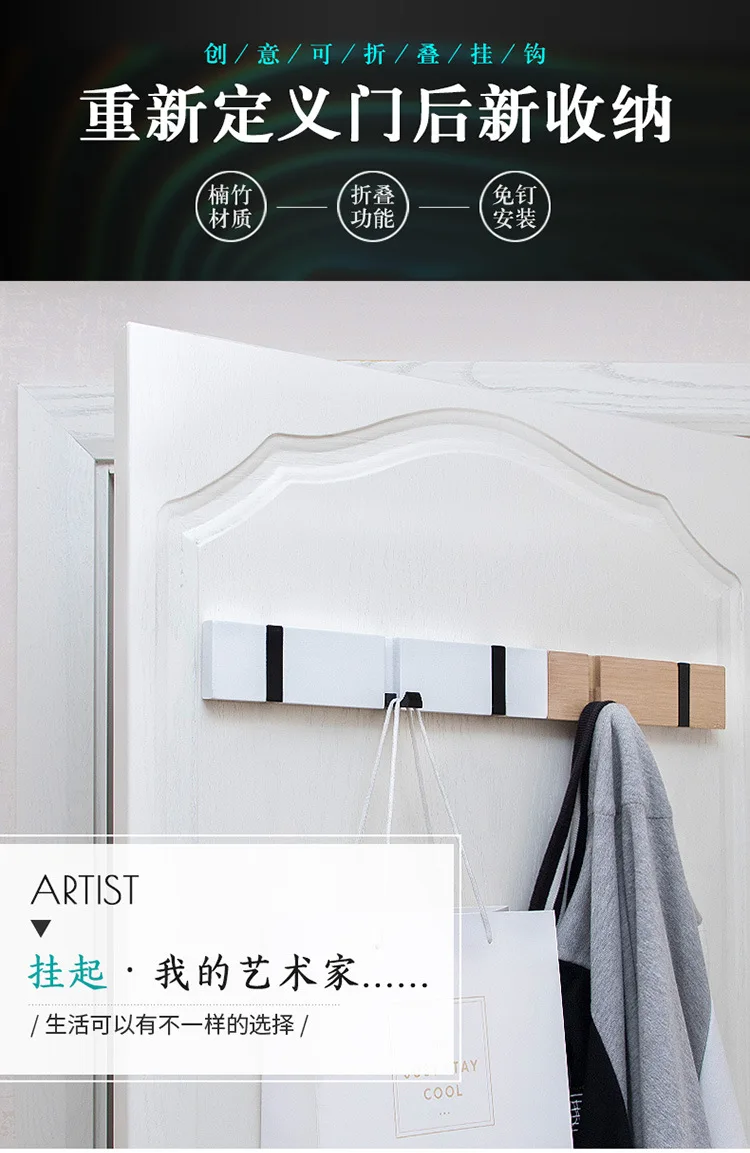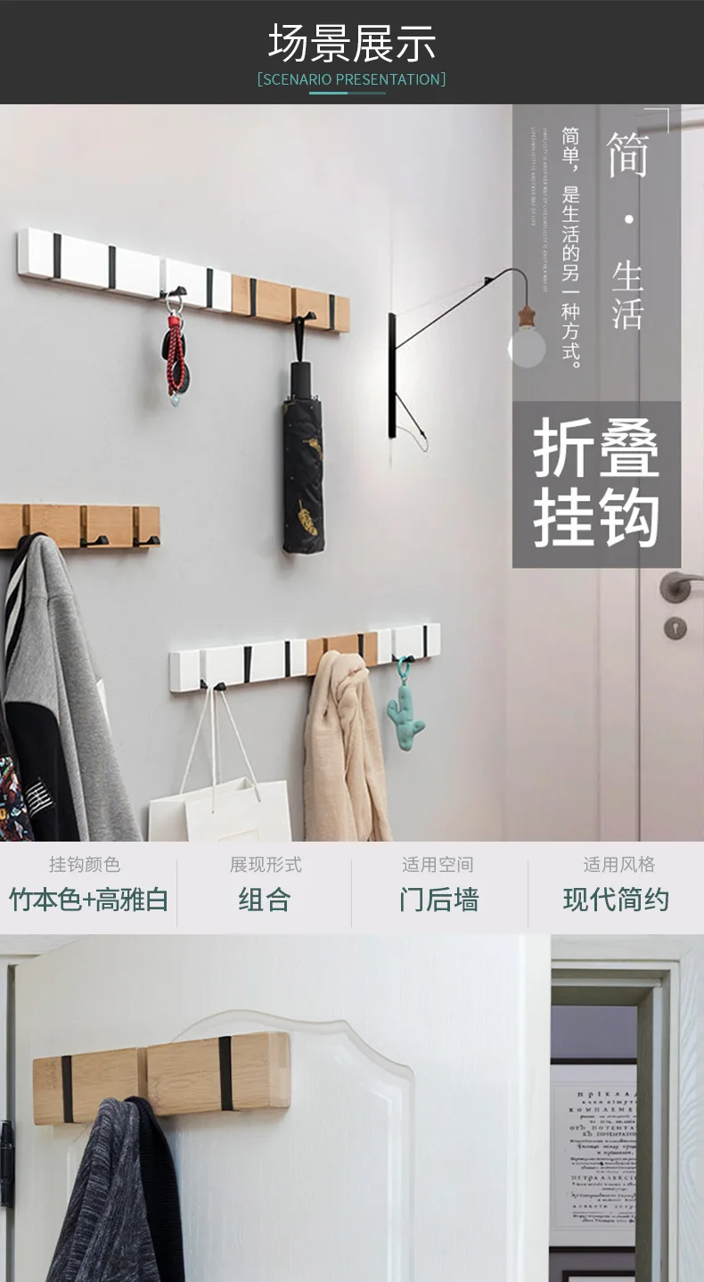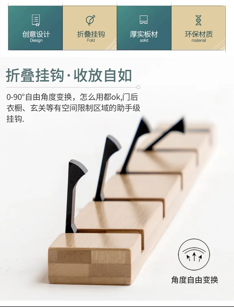 Крючки для пальто, складной бамбуковый крючок для хранения одежды, ...
