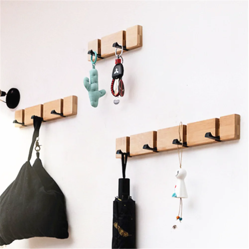 Настенные крючки, складная деревянная настенная дверная вешалка для...