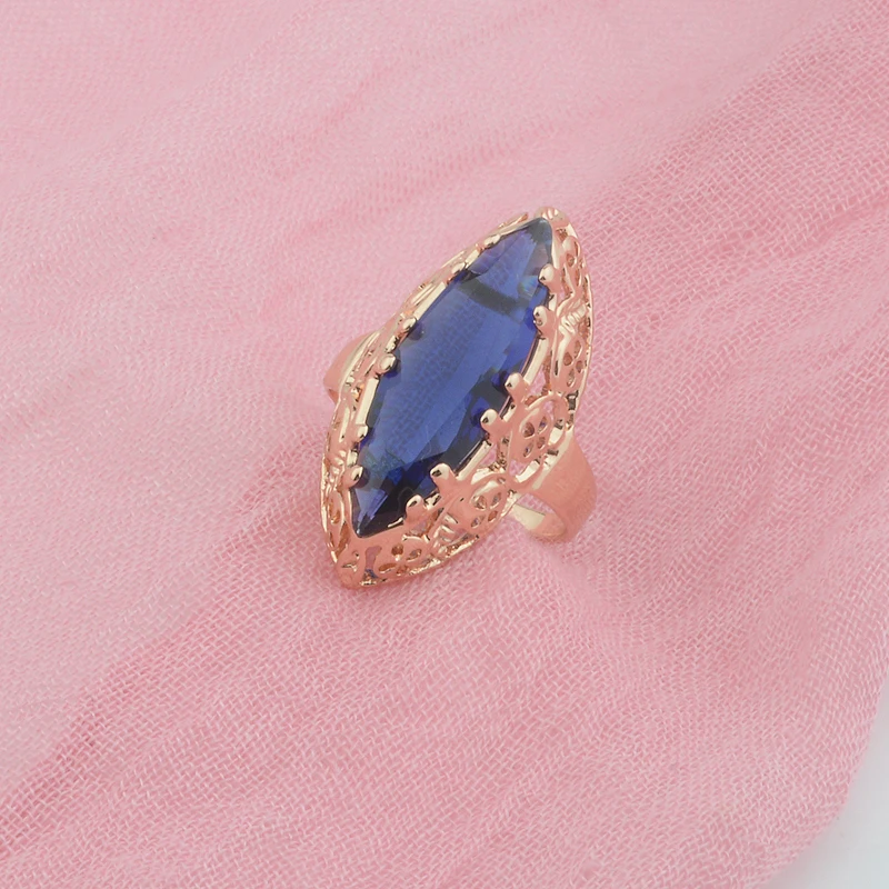 FJ женское кольцо с синим камнем шириной 7 мм, розовое Смешанное бе...