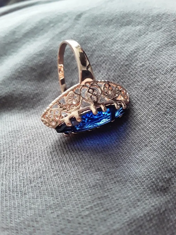Женские кольца с голубым камнем, 29x10 мм, розовое золото 585 пробы