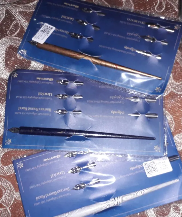Я не специалист по каллиграфии, но перья, как описано и хорошего качества. Наконечник сверху