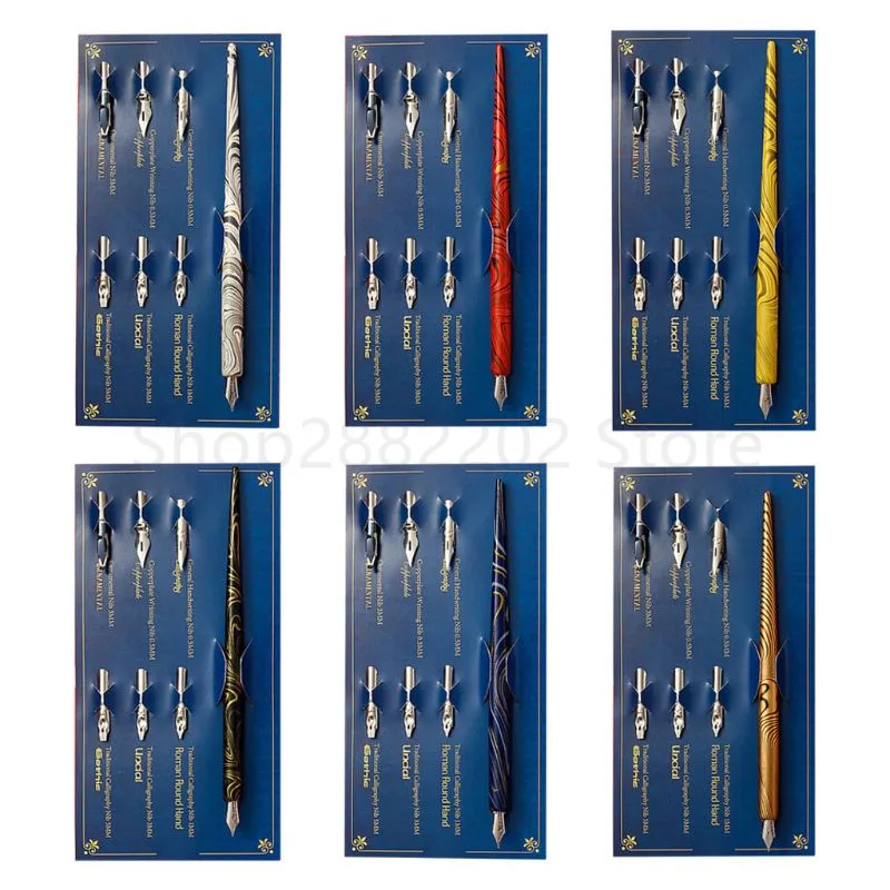 Держатель для каллиграфии OOTDTY с 6 наконечниками, мраморное дерево, манга, каллиграфия