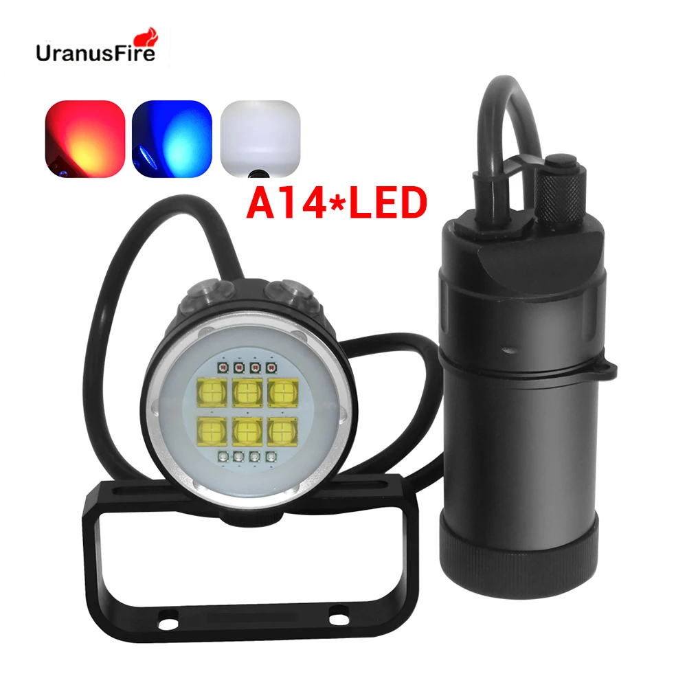 Светодиодный фонарик Uranusfire XHP90 для дайвинга раздельного типа, водонепроницаемый фонарик 100 м, 14 светодиосветодиодный, канистровая лампа для дайвинга 18650, подводный видео свет