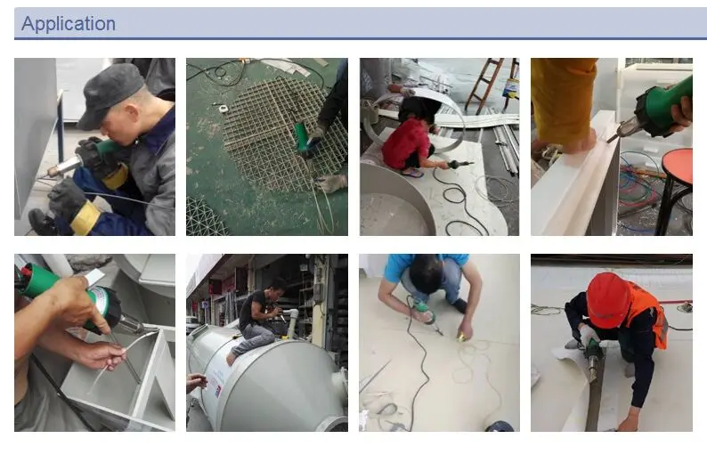 Посылка ниже Ручной сварочный аппарат горячего воздуха 1600 Вт * 1 Плоское сопло 40 мм * 1 Пресс-ролик 40 мм * 1 Запасной тепловой элемент + слюдяная трубка * 1 Экологически чистая-зеленый Тип Это удобно, экономично, надежно для weding всех различных типов thermaplastic материал, для rooifng, напольное покрытие, брезент, изготовление пластика и т. д. особенно хорошо для долгого непрерывного рабочего места -Инструмент горячего воздуха для сварки материалов ПВХ, PE, PP, PA, EPDM, PS, TPO, EVA -Инструмент горячего воздуха для сушки и активации -Термофен для термоусадочных пластиковых колпачков -Инструмент горячего воздуха для сварки пластиковых резервуаров, пластиковых труб и пластиковых листов Технические данные Напряжение 220 В Мощность 1600 Вт Частота 50/60 Гц Температура 20-700 °C бесступенчатая регулировка Объем воздуха макс 180 л/мин Давление воздуха 2600 Па Уровень шума менее 65 дБ Вес 1,2 кг (включая электрический провод 3 м) Цвет зеленый/черный/синий, большие заказы могут быть изготовлены по индивидуальному заказу Основные характеристики: 1) Простая конструкция, простота ремонта и обслуживания. 2) используется немецкий нагревательный провод для тепловыделения. 3) Новая электрическая монтажная плата имеет подключаемую конструкцию, поэтому ее очень легко заменить. 4) пластиковые детали GFR-нейлон Выдерживает высокую температуру. 5) одобрено VDE Европейский шнур питания