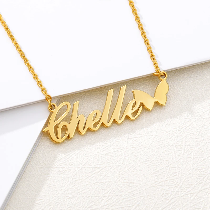 V притягивающее персонализированное именное ожерелье золотого цвета из нержавеющей стали, ожерелье с бабочкой, ювелирное изделие, подарок подружки невесты, ручная работа