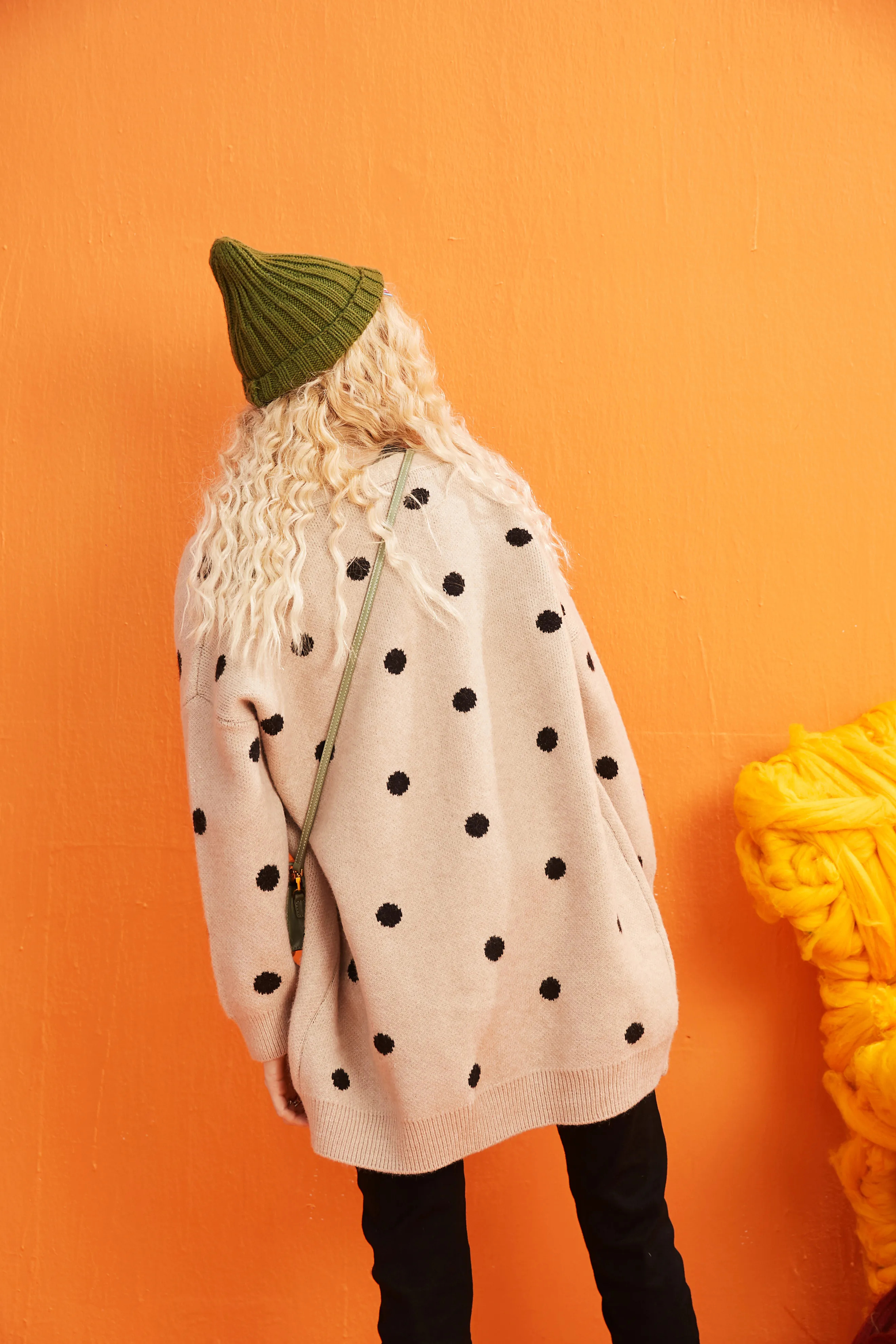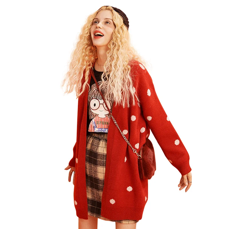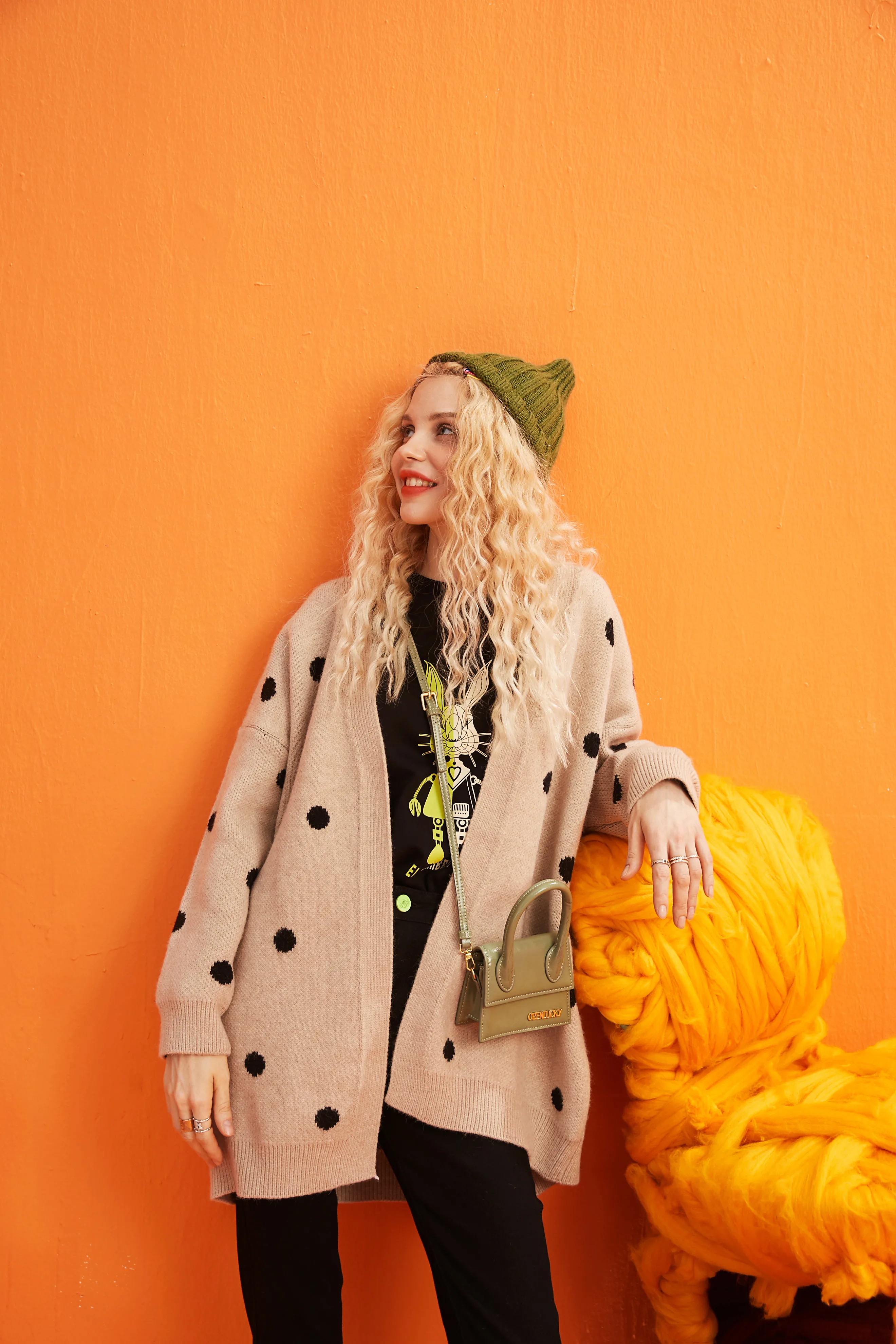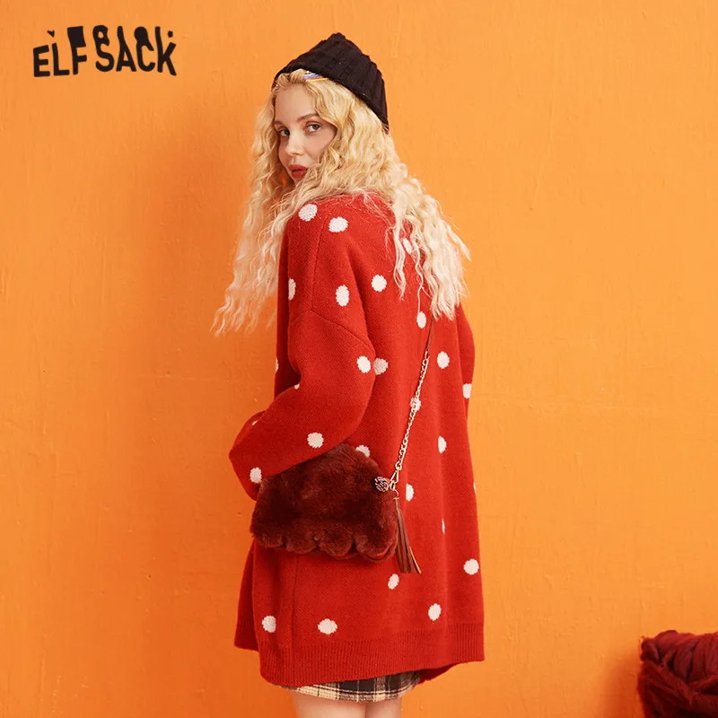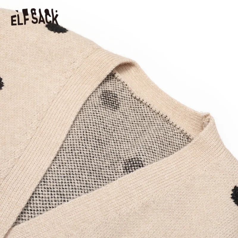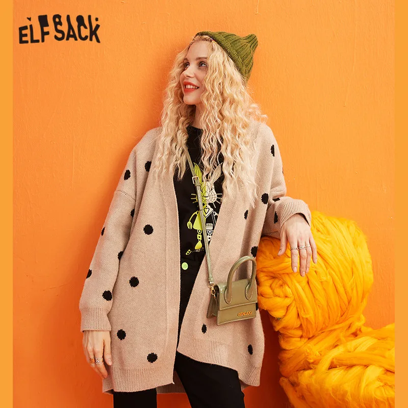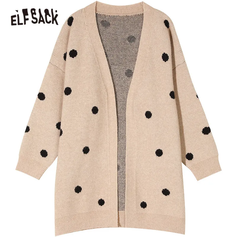 Женский однотонный кардиган ELFSACK, бежевый Повседневный вязаный кардиган в горошек на одной пуговице, с длинным рукавом, в Корейском стиле, зима 2019