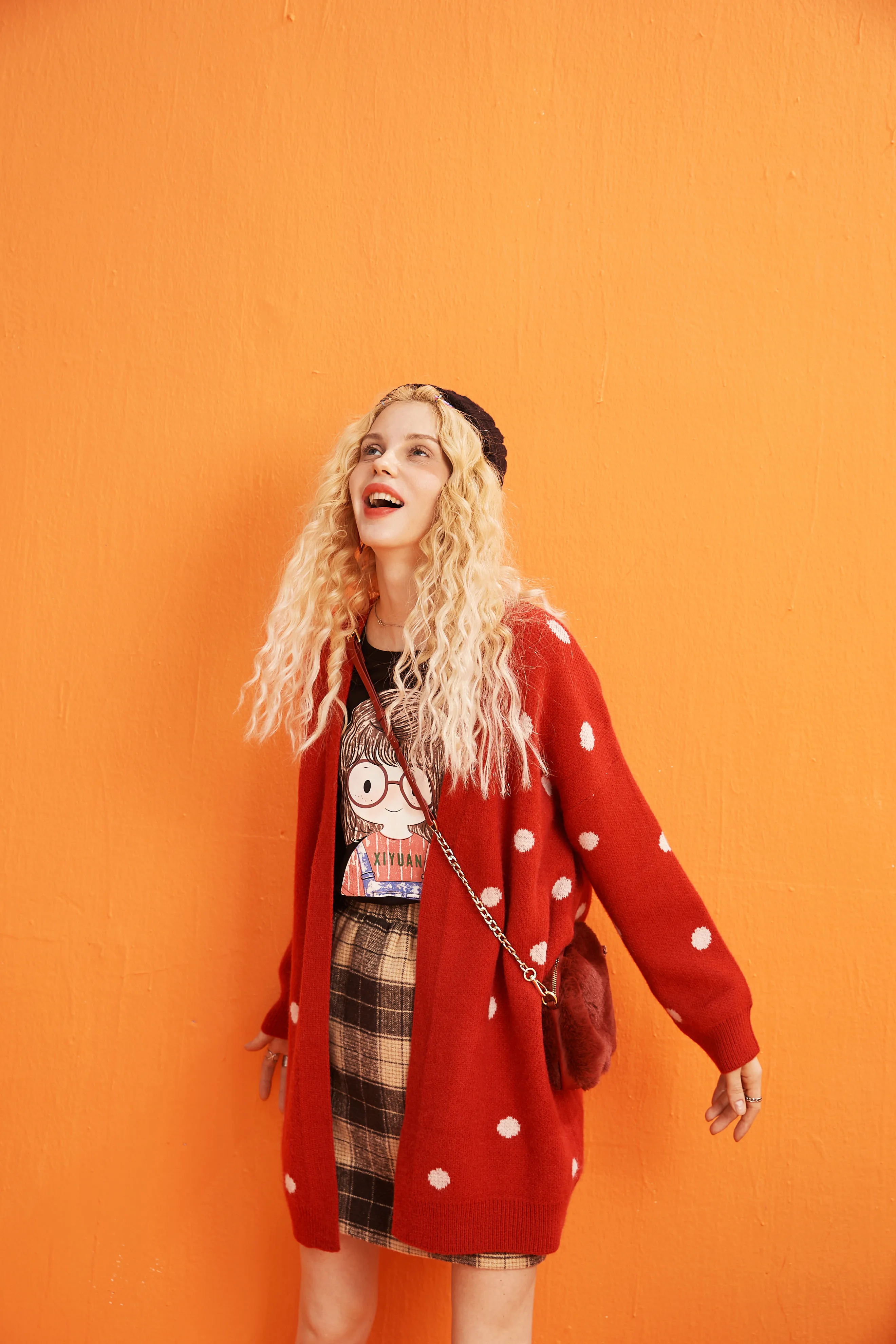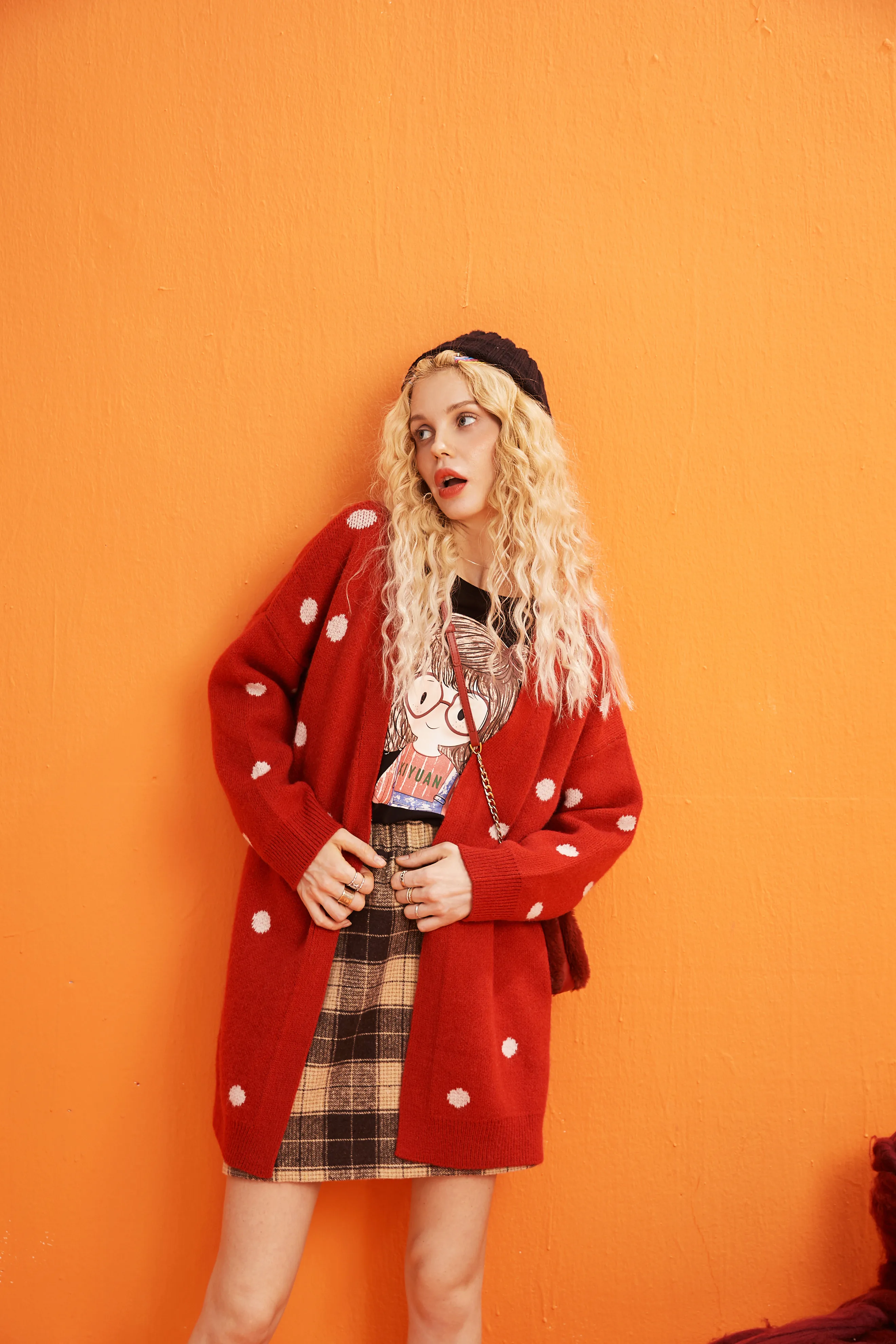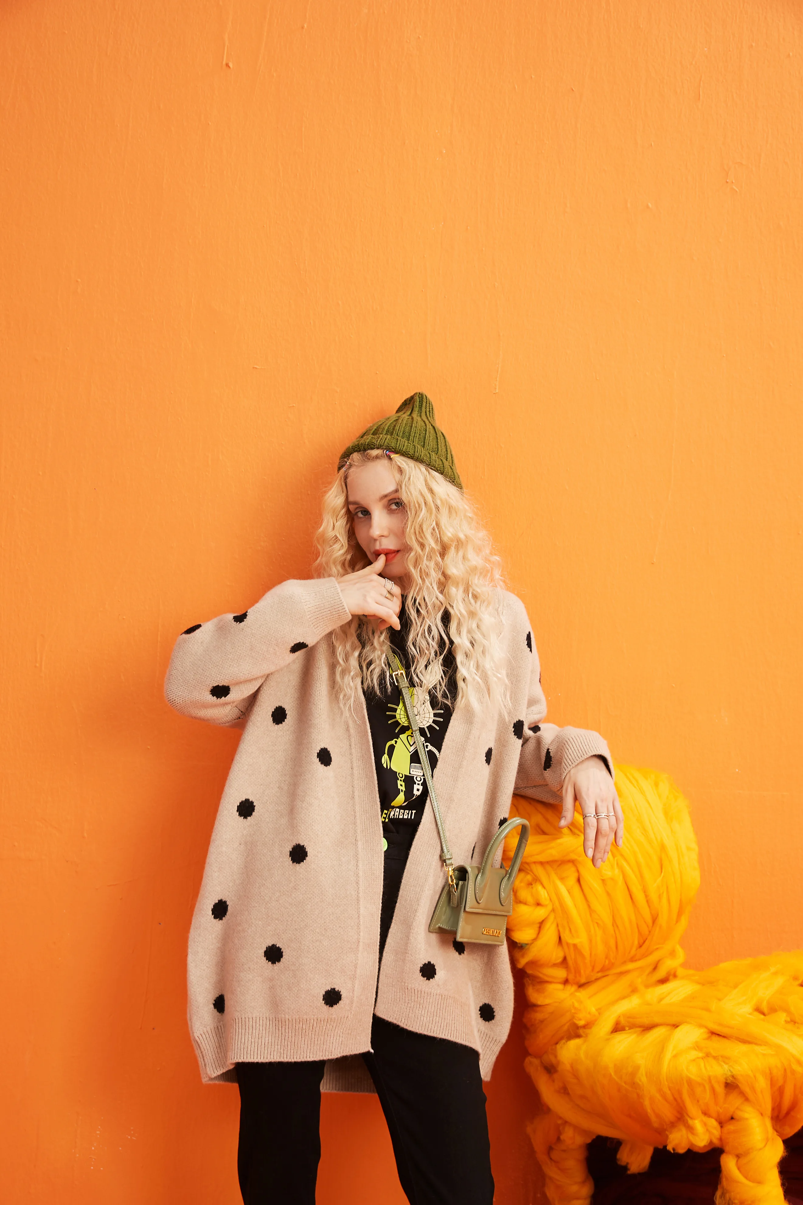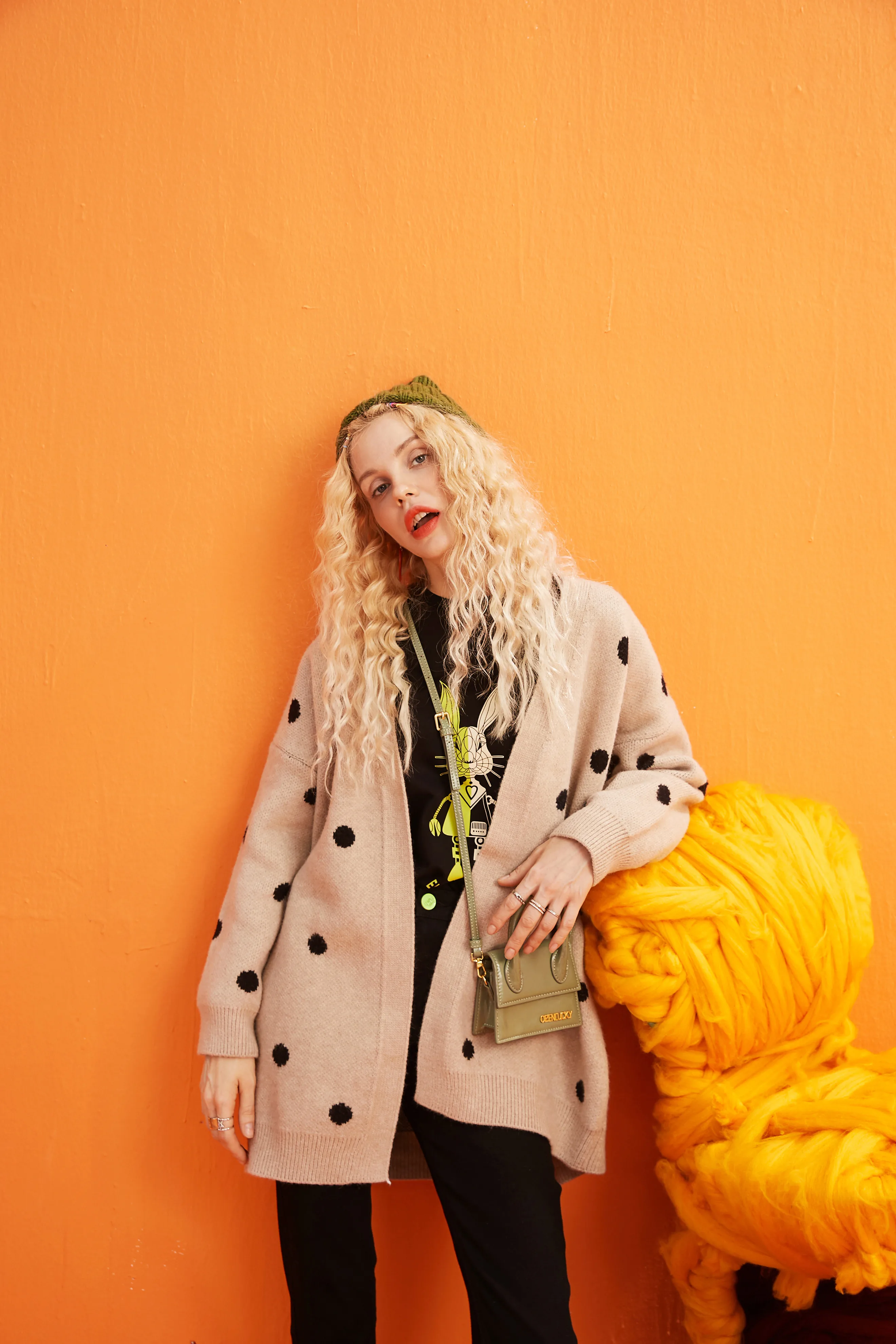 Женский однотонный кардиган ELFSACK, бежевый Повседневный вязаный кардиган в горошек на одной пуговице, с длинным рукавом, в Корейском стиле, зима 2019